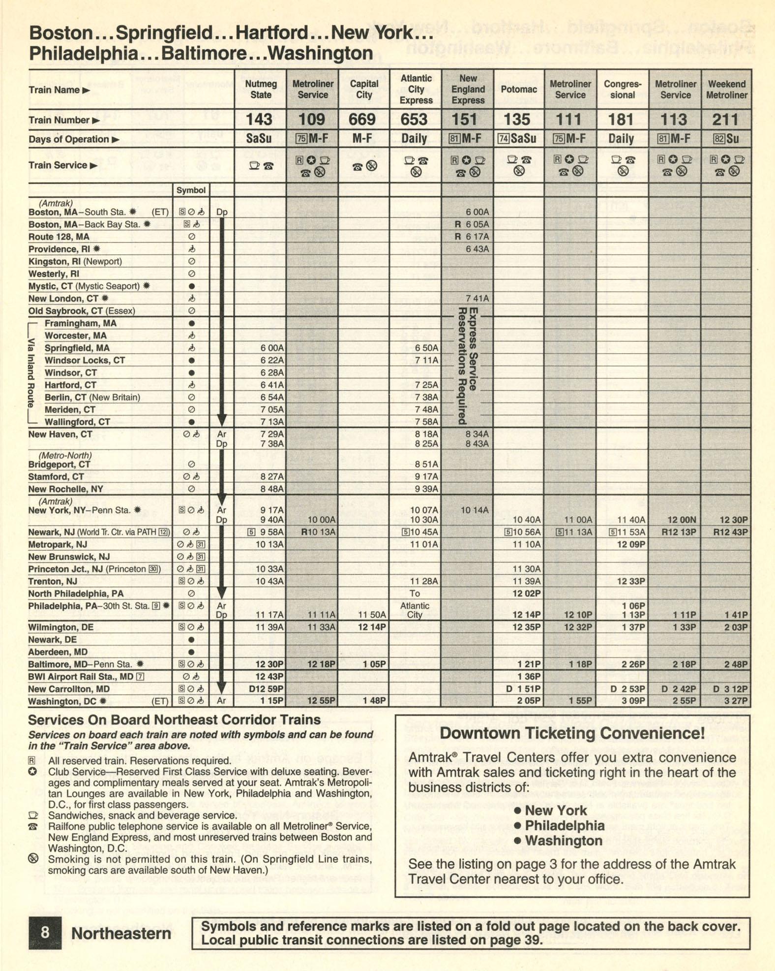 This timetable image is ©1993 National Railroad Passenger Corporation (Amtrak).