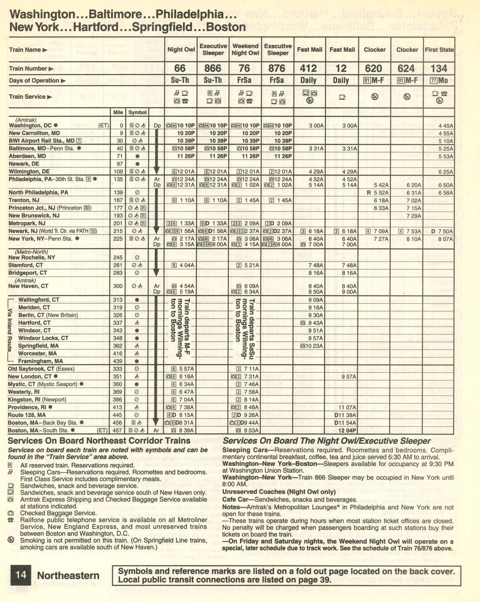 This timetable image is ©1993 National Railroad Passenger Corporation (Amtrak).