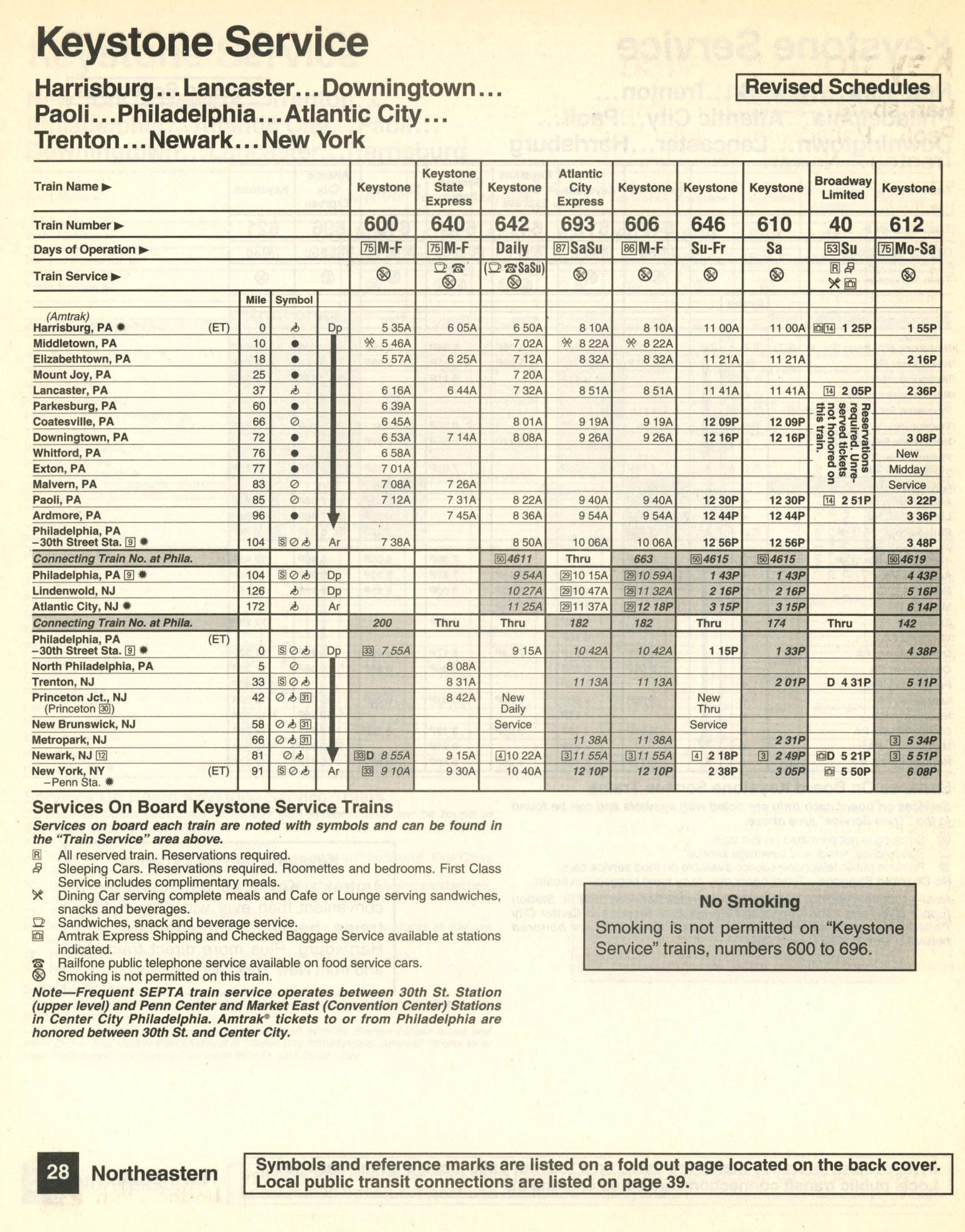 This timetable image is ©1993 National Railroad Passenger Corporation (Amtrak).