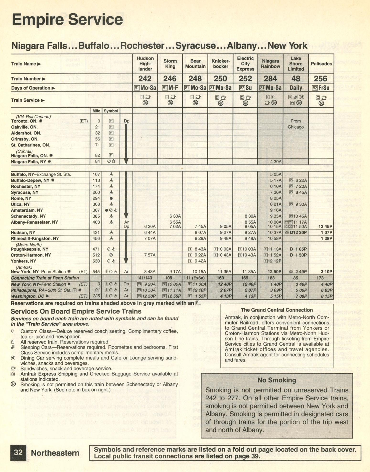 This timetable image is ©1993 National Railroad Passenger Corporation (Amtrak).