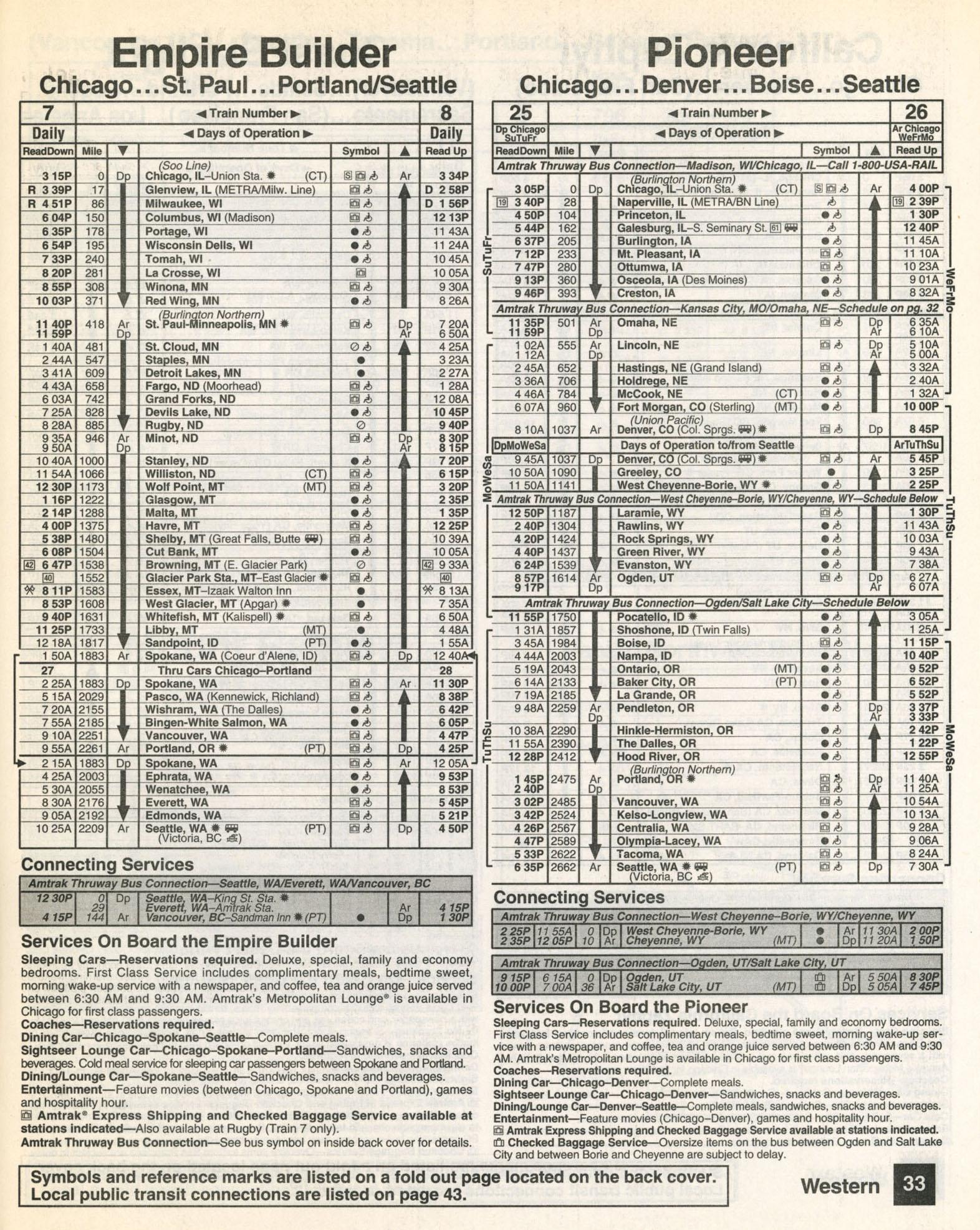 This timetable image is ©1993 National Railroad Passenger Corporation (Amtrak).