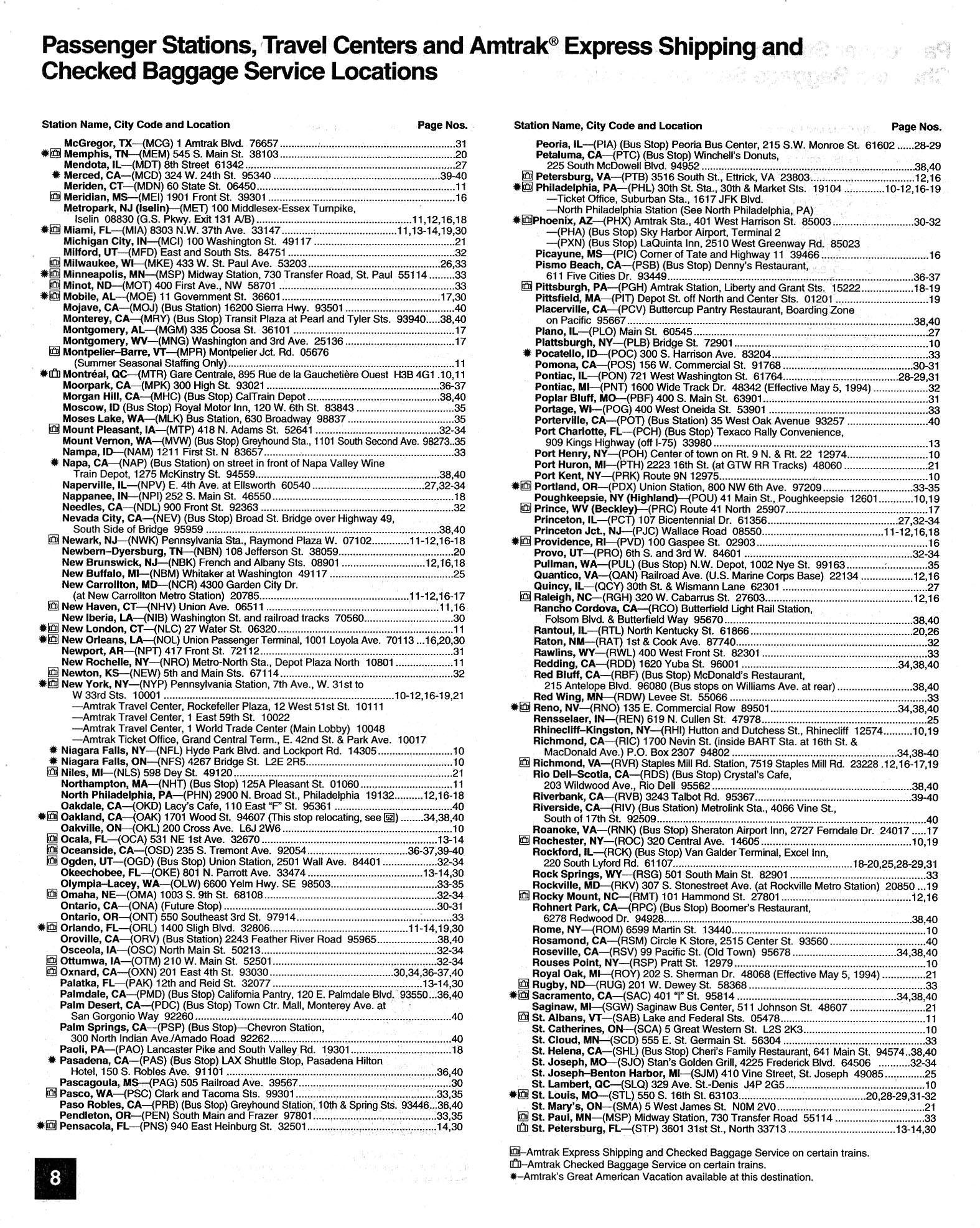 This timetable image is ©1994 National Railroad Passenger Corporation (Amtrak).