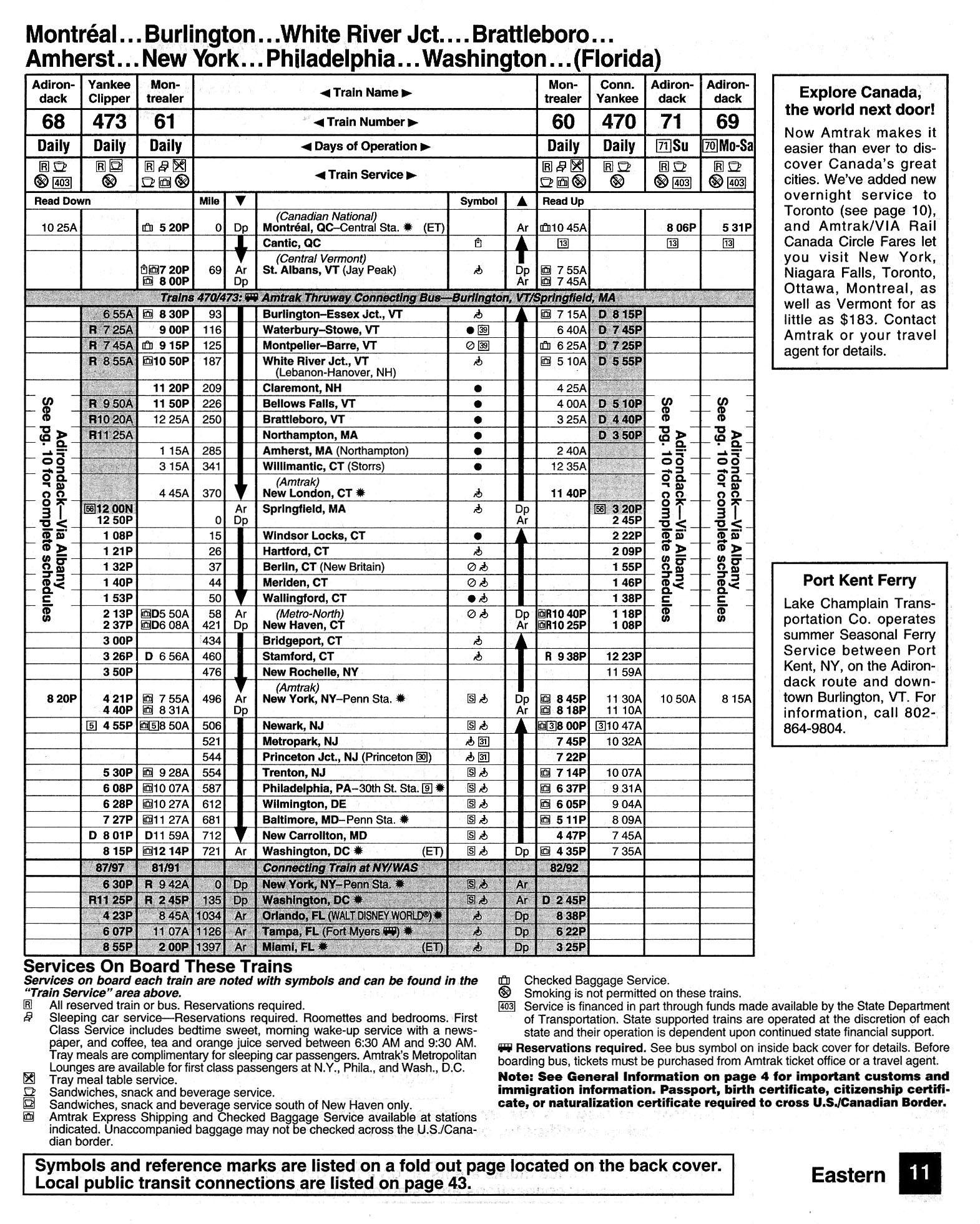 This timetable image is ©1994 National Railroad Passenger Corporation (Amtrak).