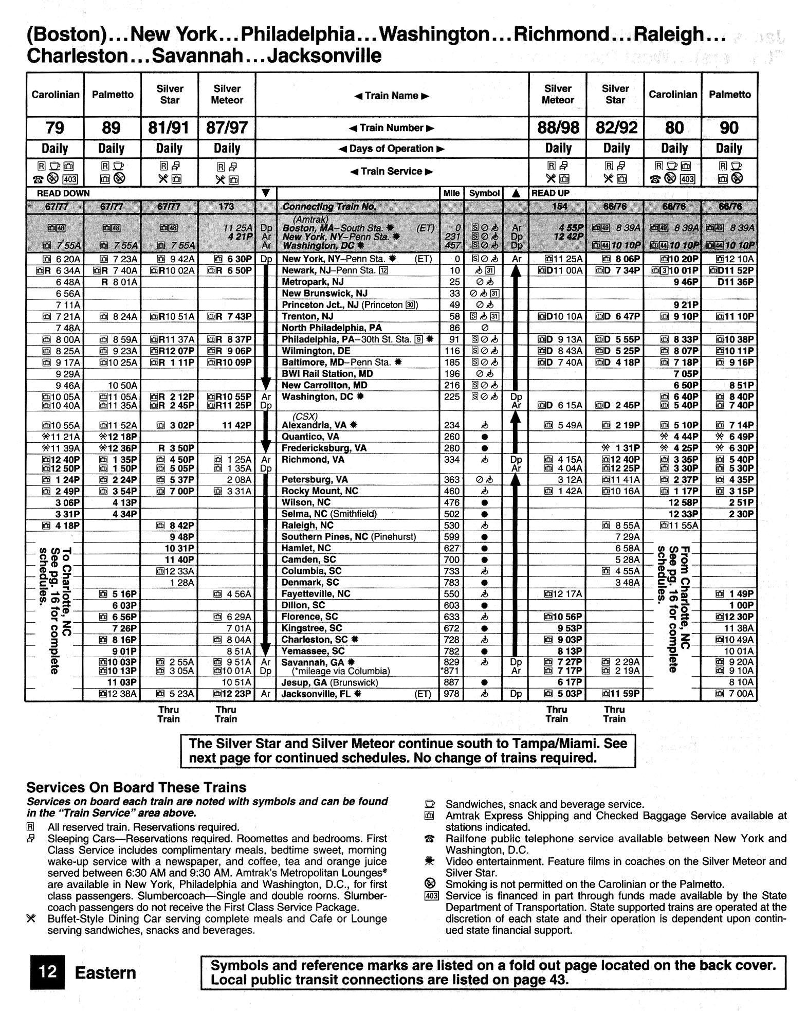 This timetable image is ©1994 National Railroad Passenger Corporation (Amtrak).