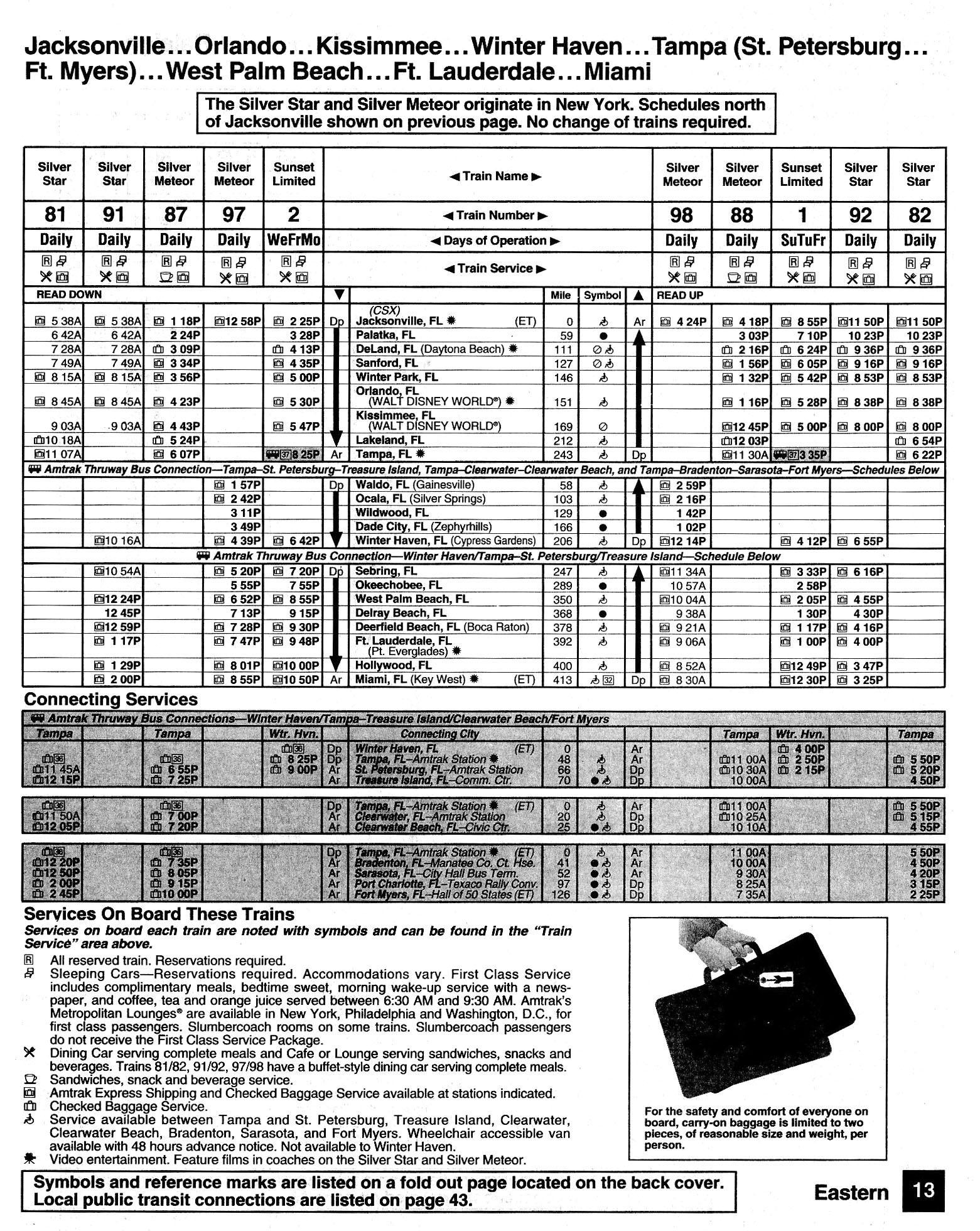 This timetable image is ©1994 National Railroad Passenger Corporation (Amtrak).
