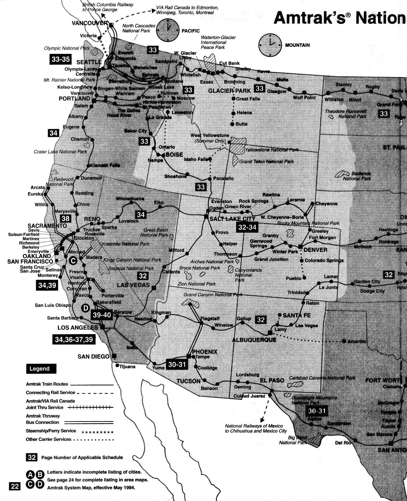 This timetable image is ©1994 National Railroad Passenger Corporation (Amtrak).