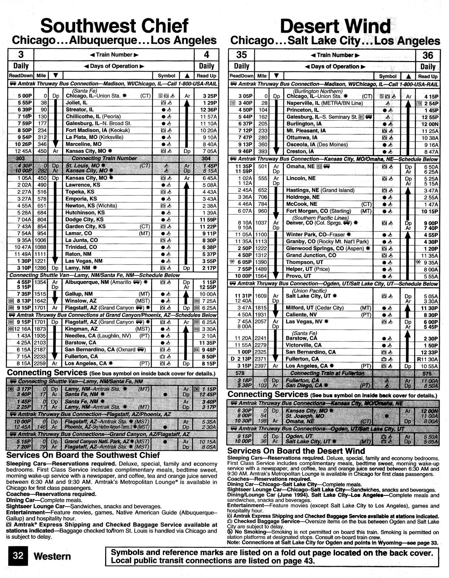 This timetable image is ©1994 National Railroad Passenger Corporation (Amtrak).