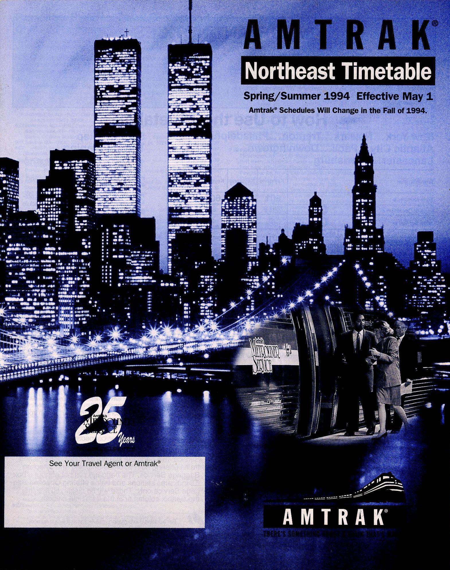 This timetable image is ©1994 National Railroad Passenger Corporation (Amtrak).