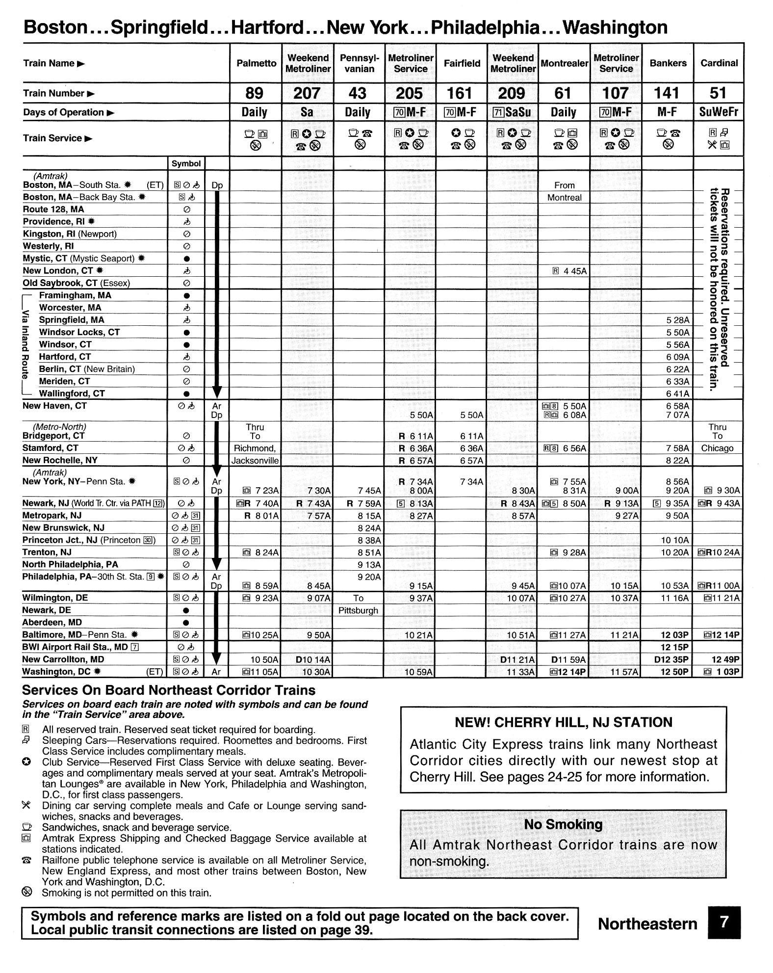 This timetable image is ©1994 National Railroad Passenger Corporation (Amtrak).