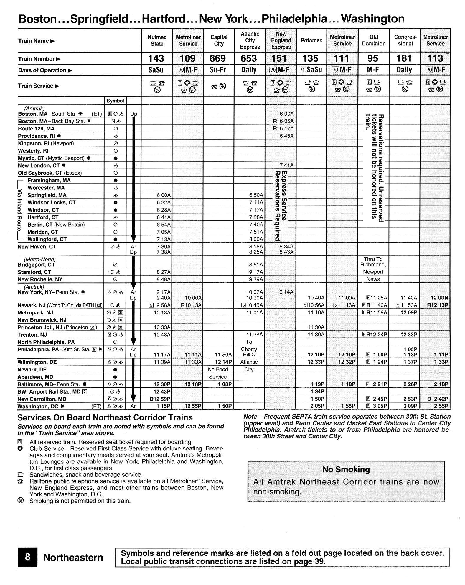 This timetable image is ©1994 National Railroad Passenger Corporation (Amtrak).