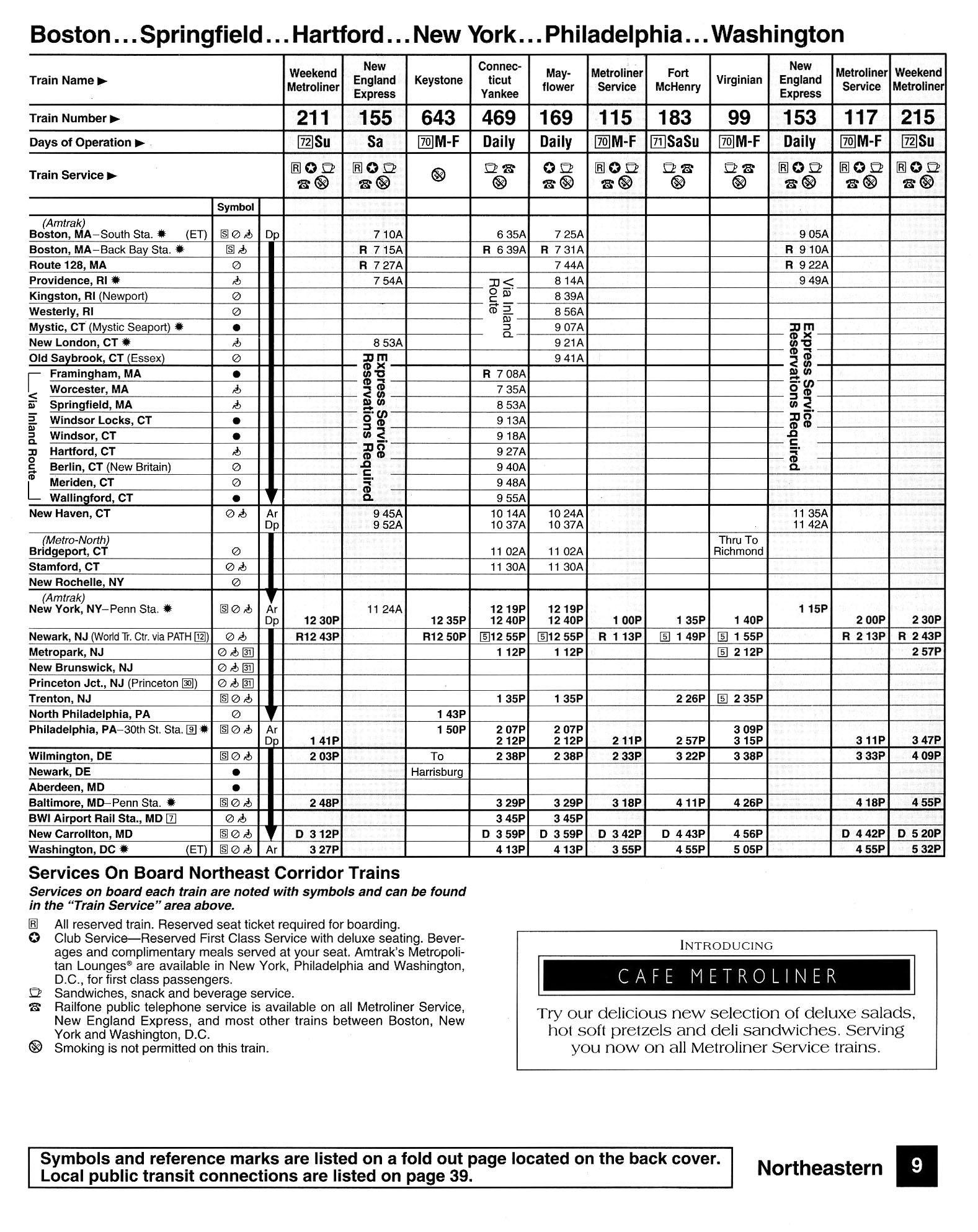 This timetable image is ©1994 National Railroad Passenger Corporation (Amtrak).