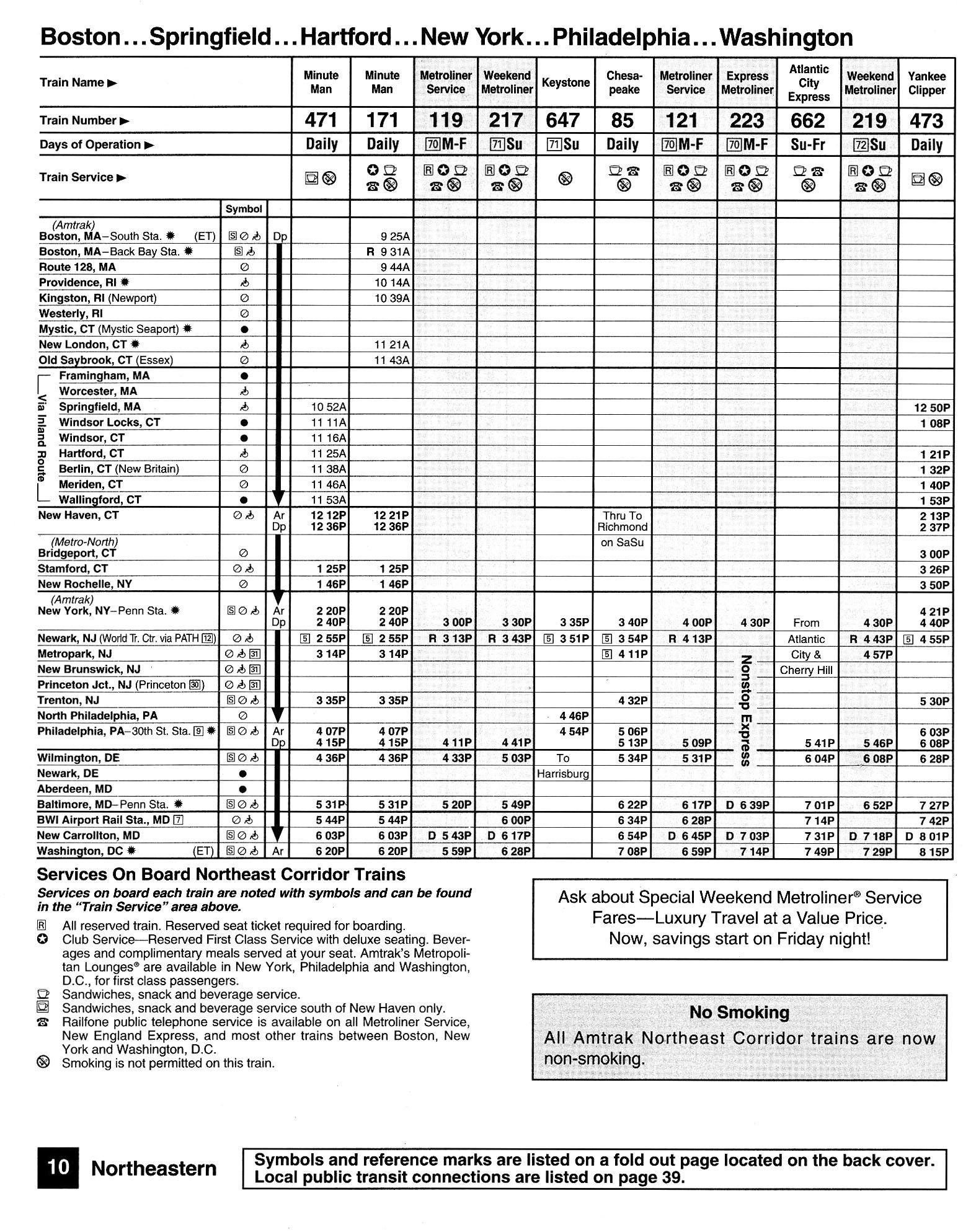 This timetable image is ©1994 National Railroad Passenger Corporation (Amtrak).