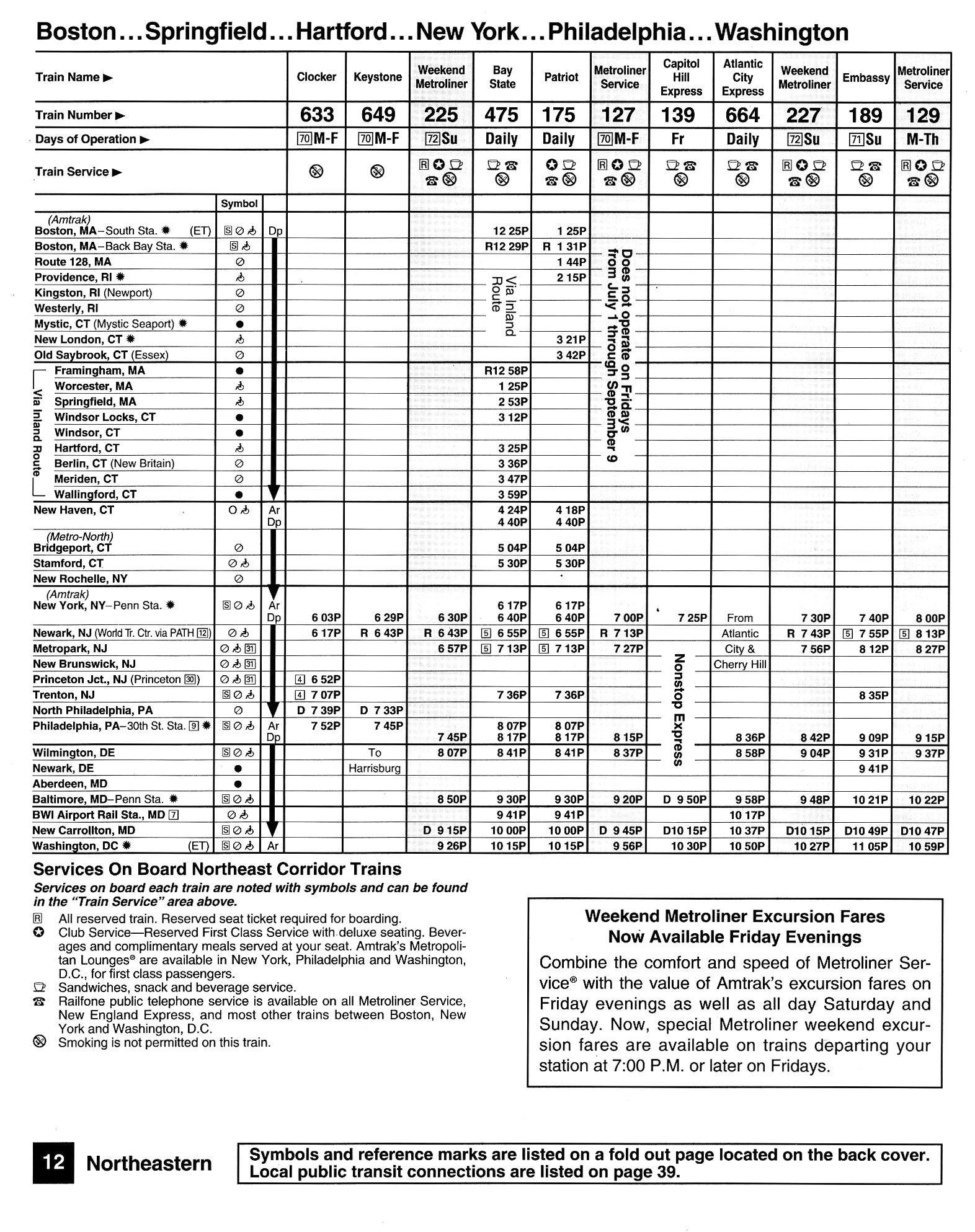 This timetable image is ©1994 National Railroad Passenger Corporation (Amtrak).