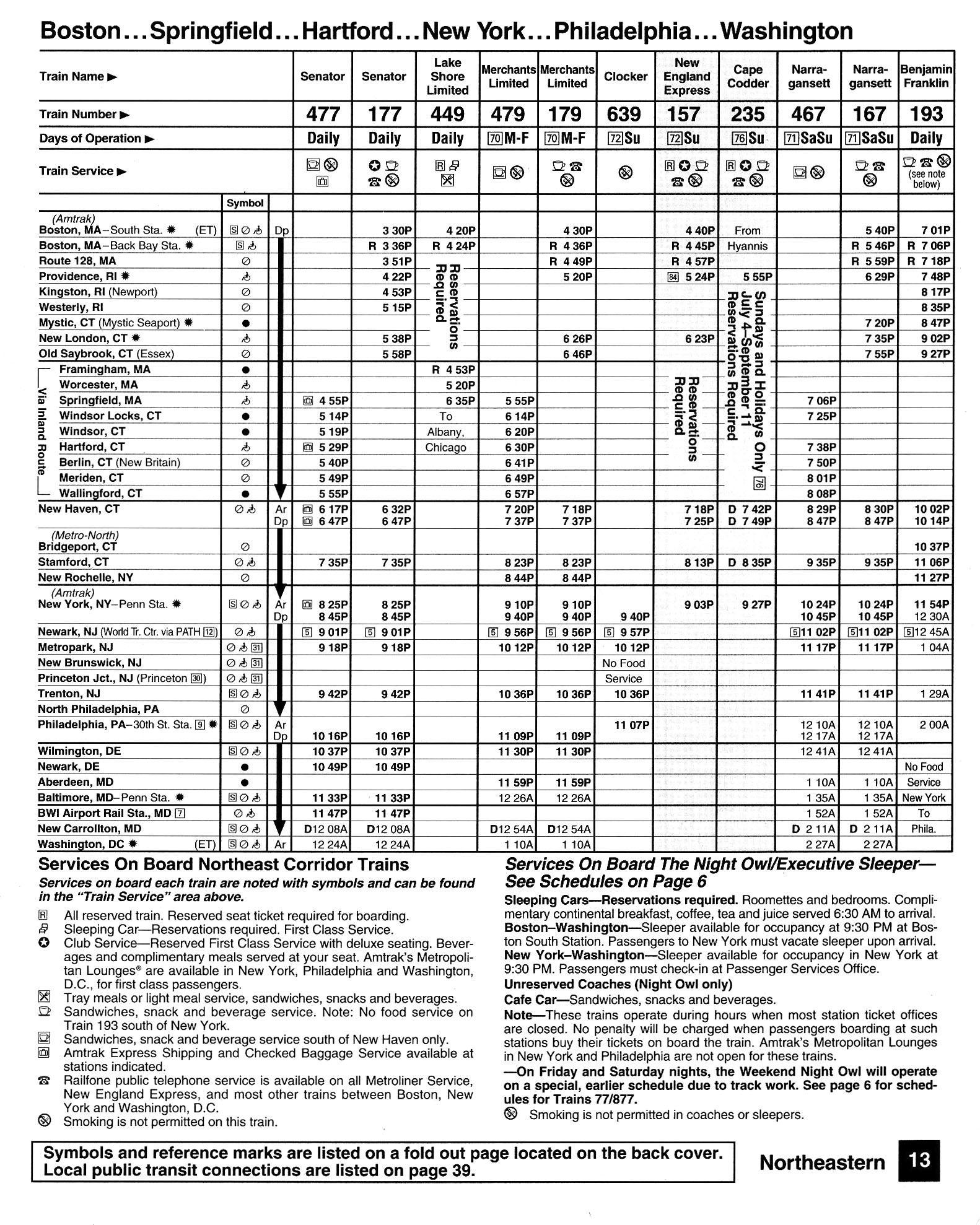 This timetable image is ©1994 National Railroad Passenger Corporation (Amtrak).