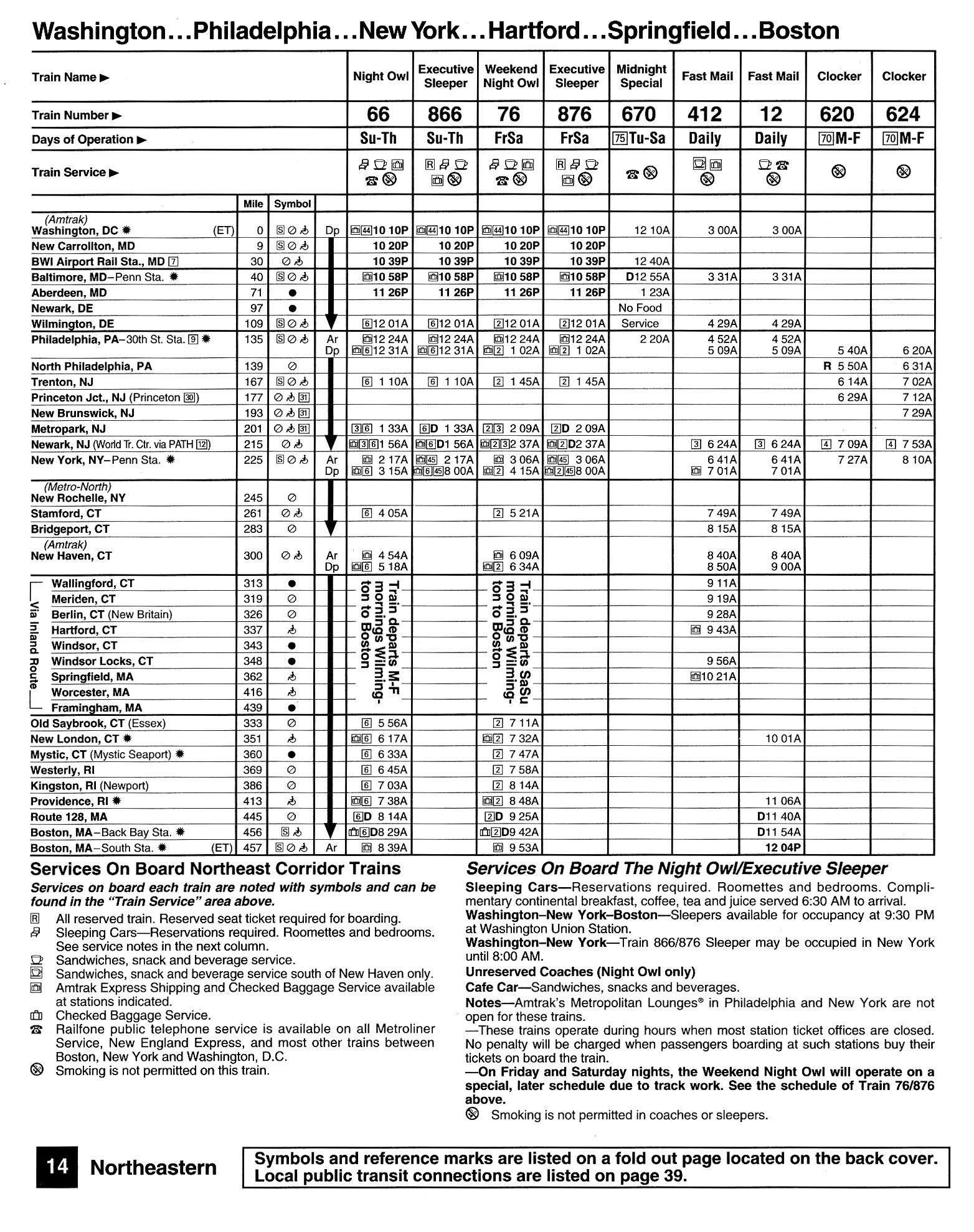 This timetable image is ©1994 National Railroad Passenger Corporation (Amtrak).