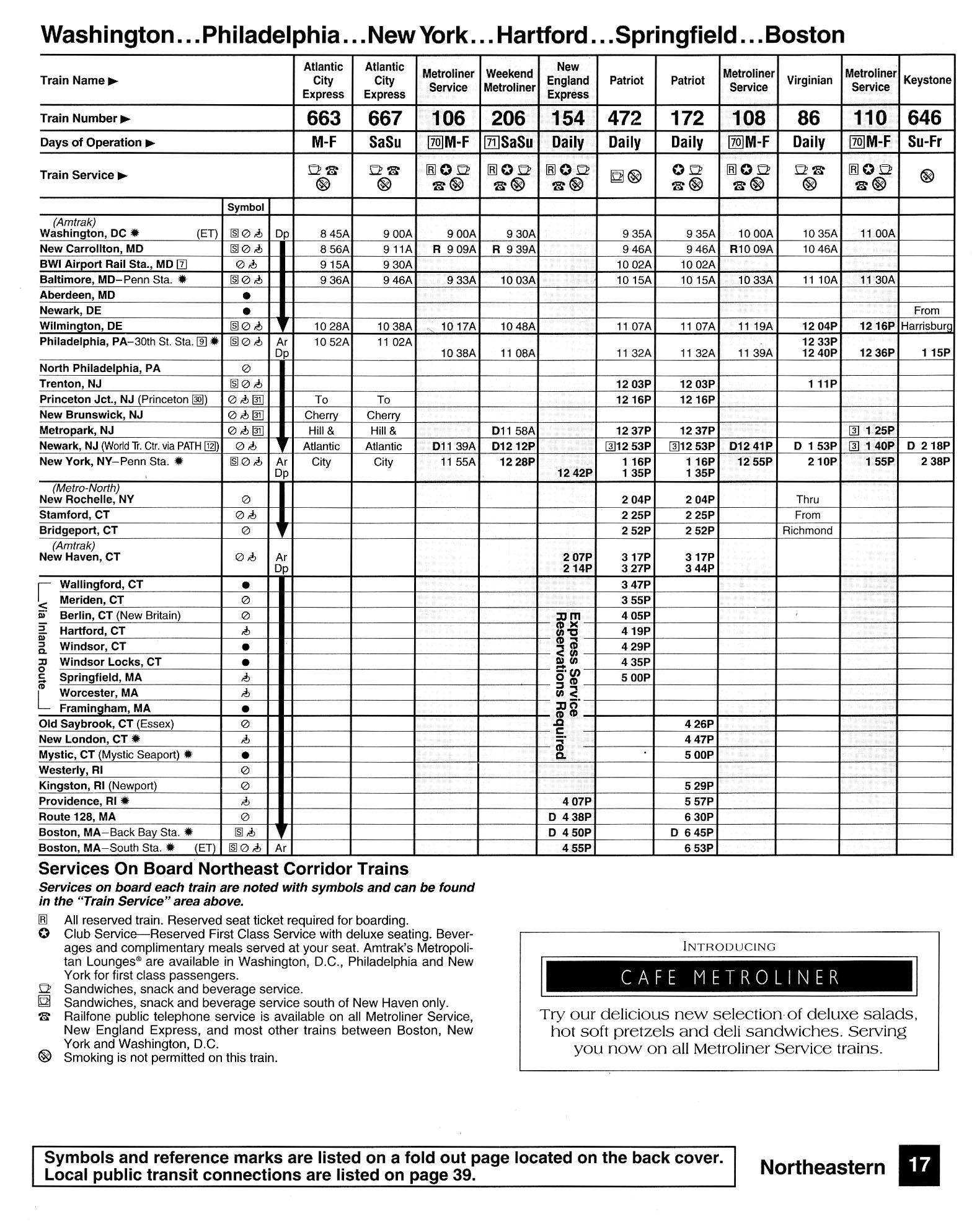 This timetable image is ©1994 National Railroad Passenger Corporation (Amtrak).