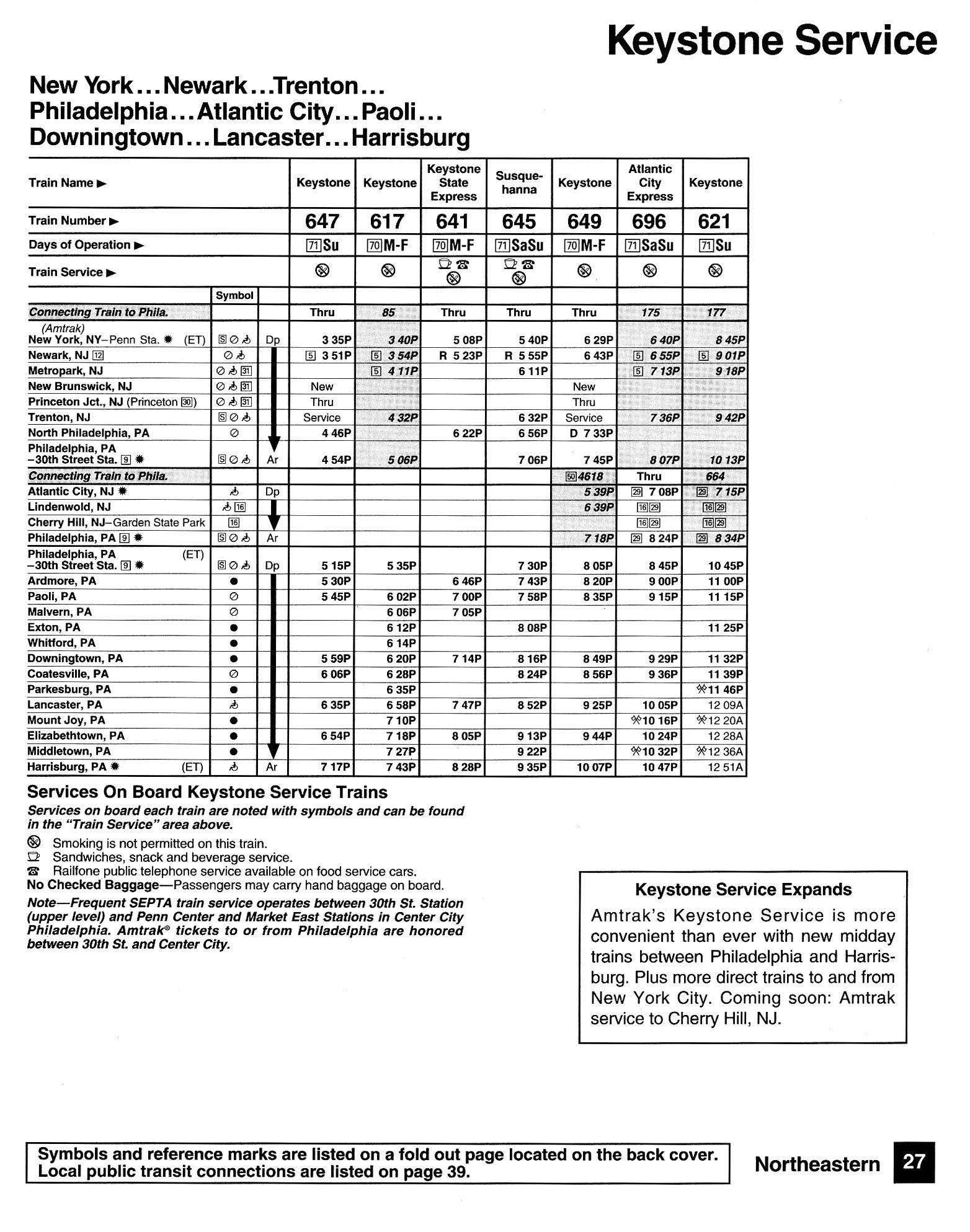 This timetable image is ©1994 National Railroad Passenger Corporation (Amtrak).