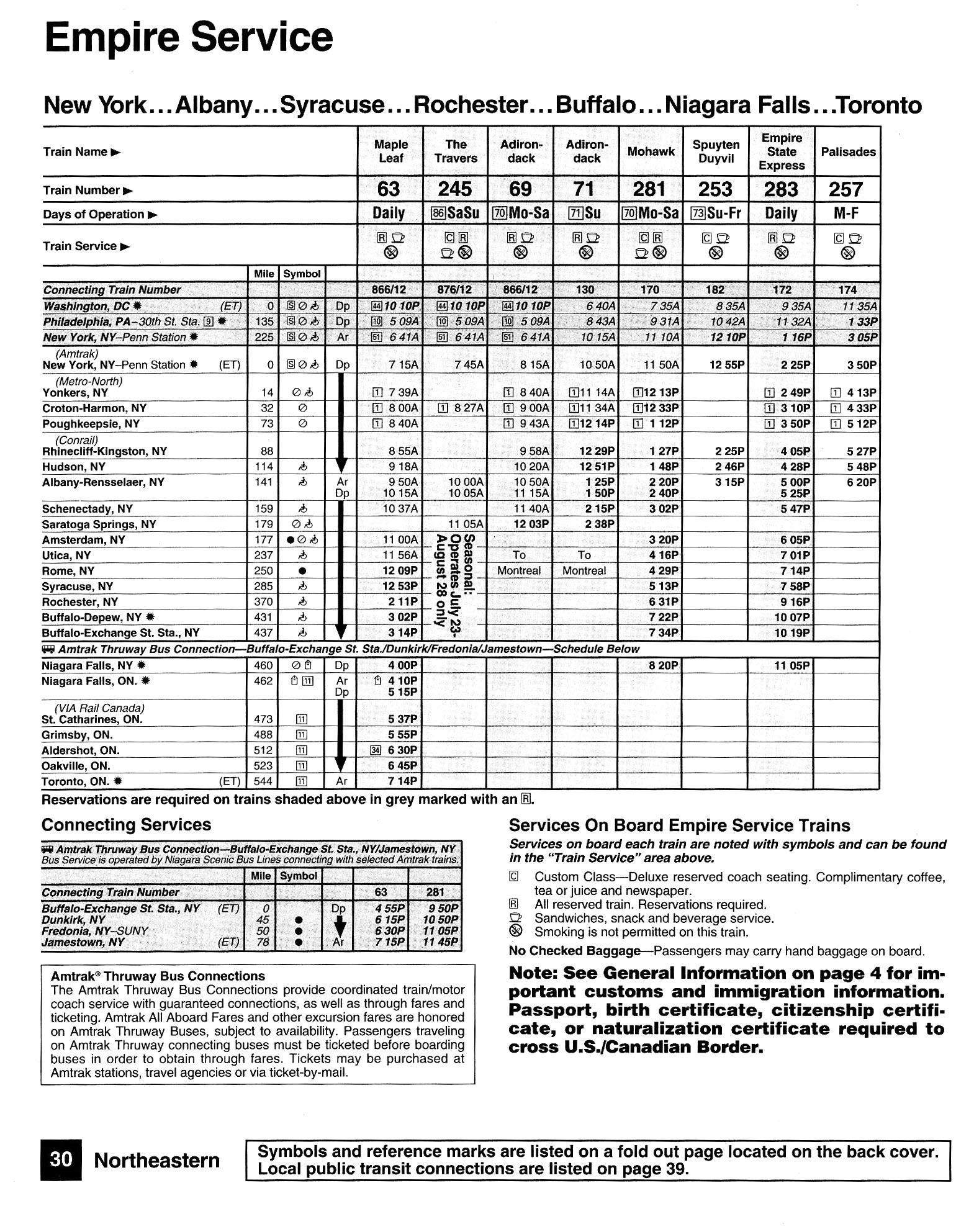 This timetable image is ©1994 National Railroad Passenger Corporation (Amtrak).
