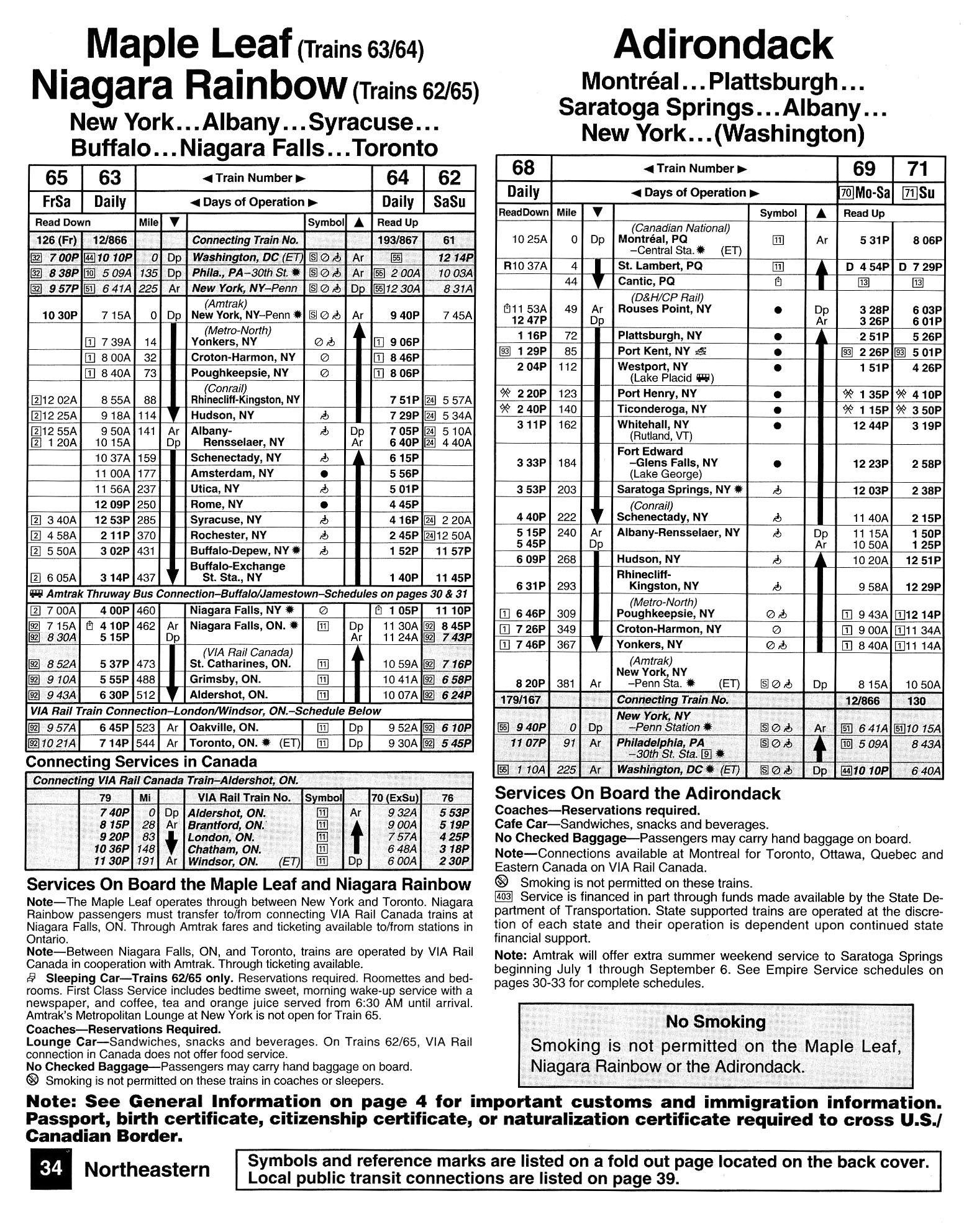 This timetable image is ©1994 National Railroad Passenger Corporation (Amtrak).