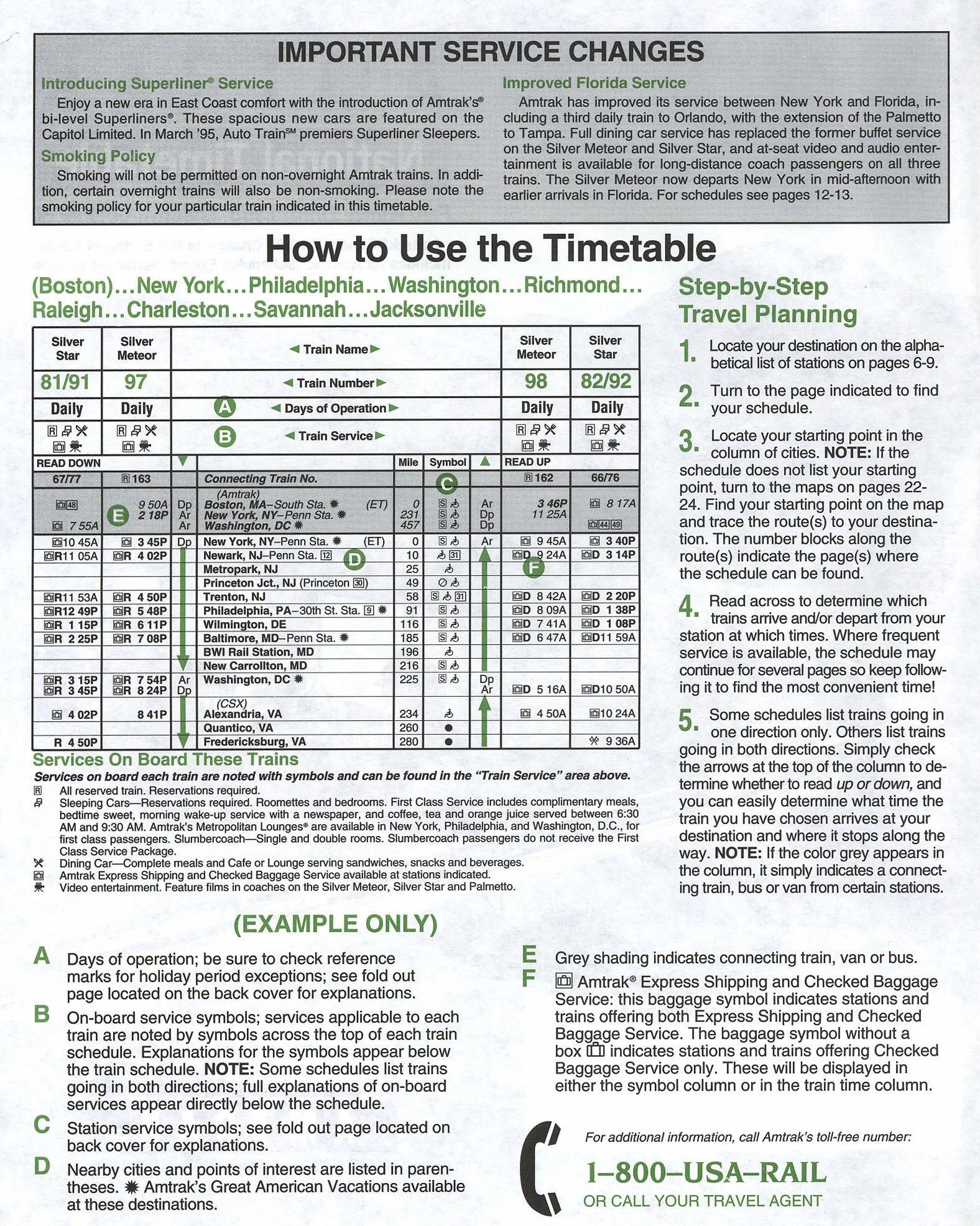 This timetable image is ©1994 National Railroad Passenger Corporation (Amtrak).