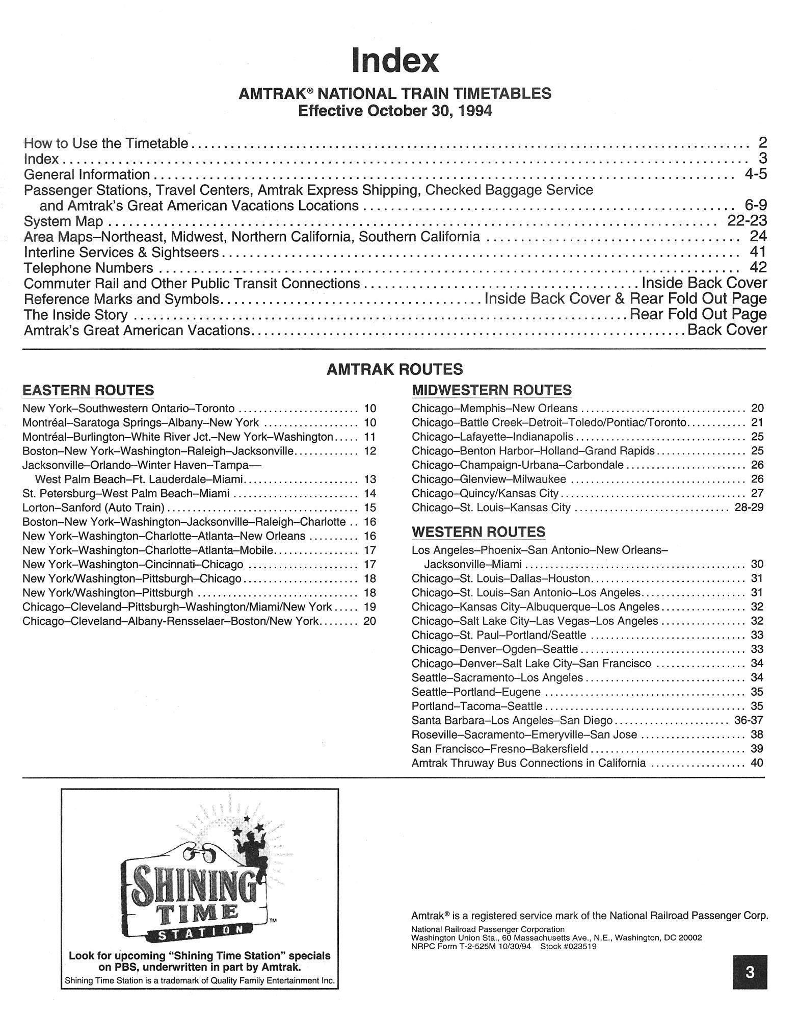 This timetable image is ©1994 National Railroad Passenger Corporation (Amtrak).