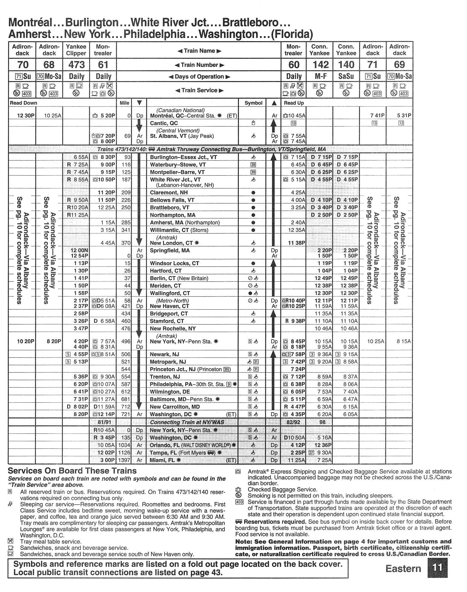This timetable image is ©1994 National Railroad Passenger Corporation (Amtrak).