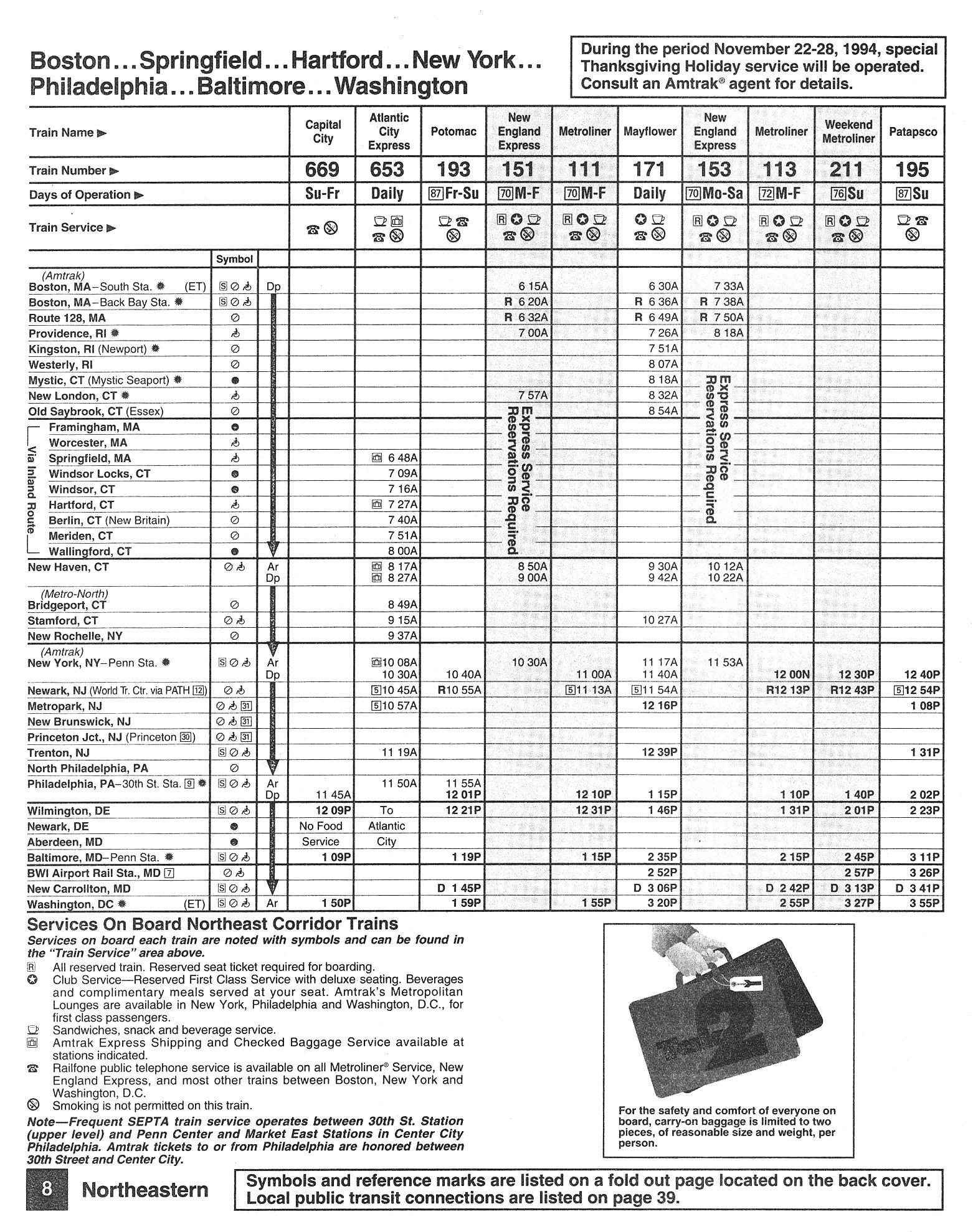This timetable image is ©1994 National Railroad Passenger Corporation (Amtrak).