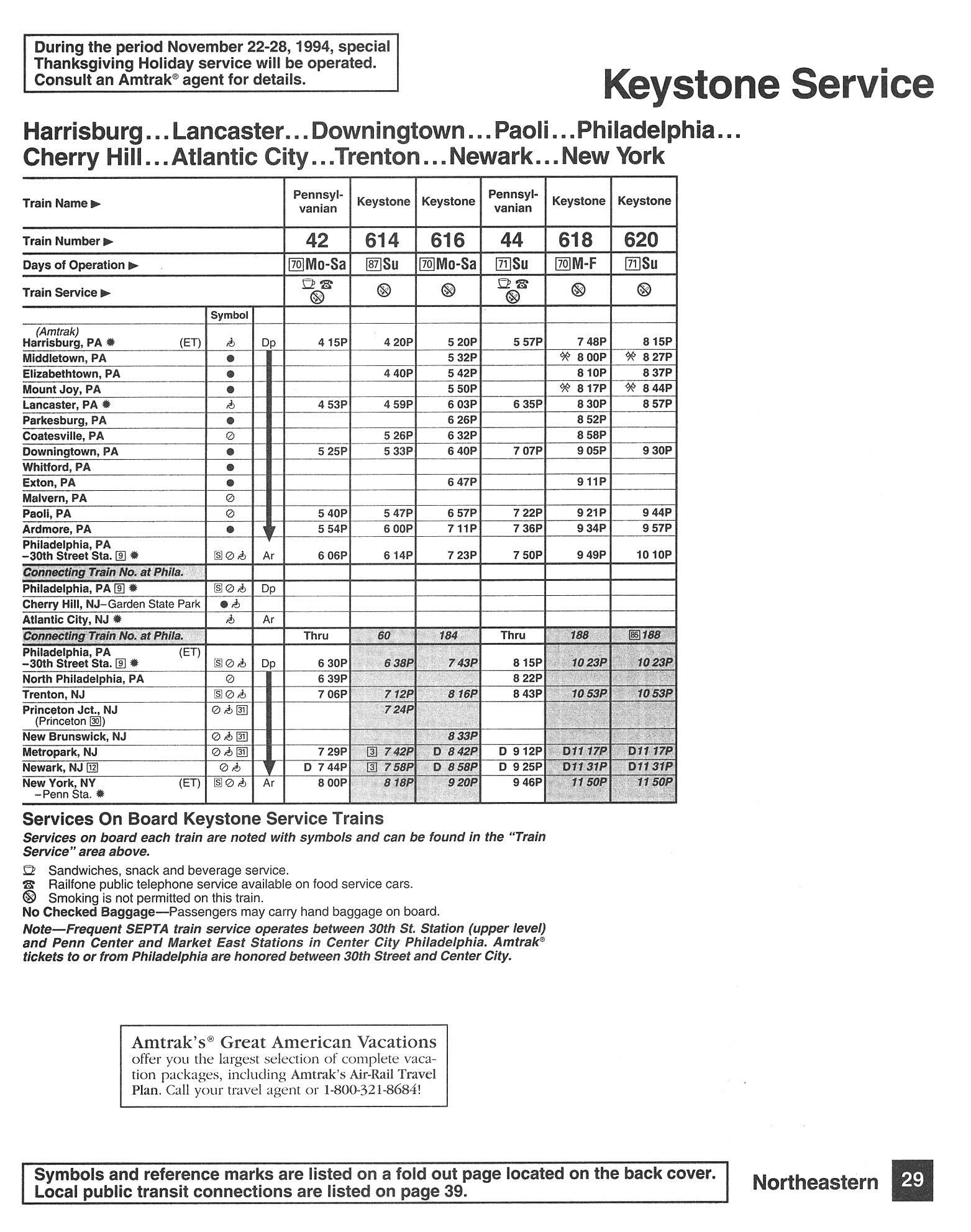 This timetable image is ©1994 National Railroad Passenger Corporation (Amtrak).