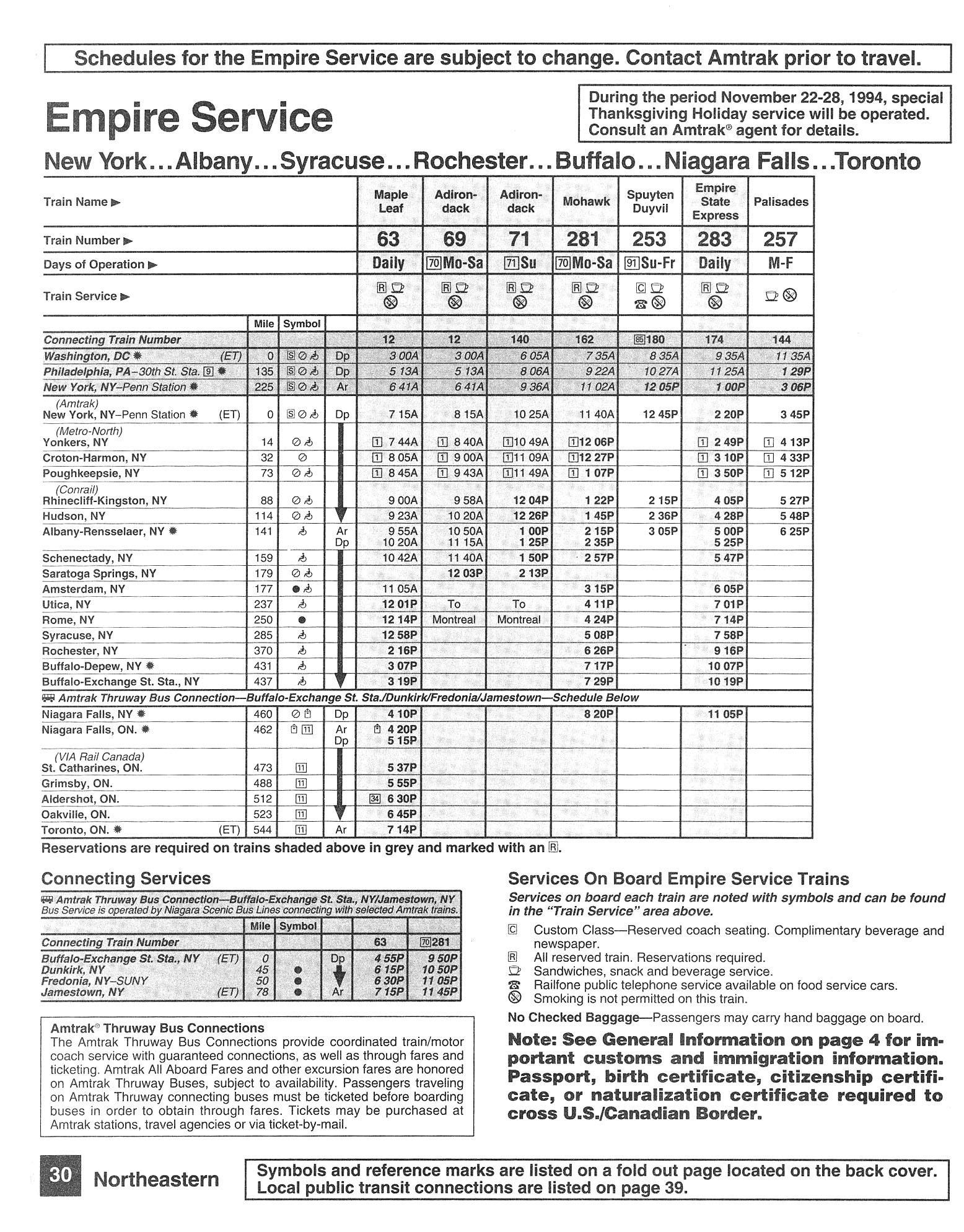 This timetable image is ©1994 National Railroad Passenger Corporation (Amtrak).