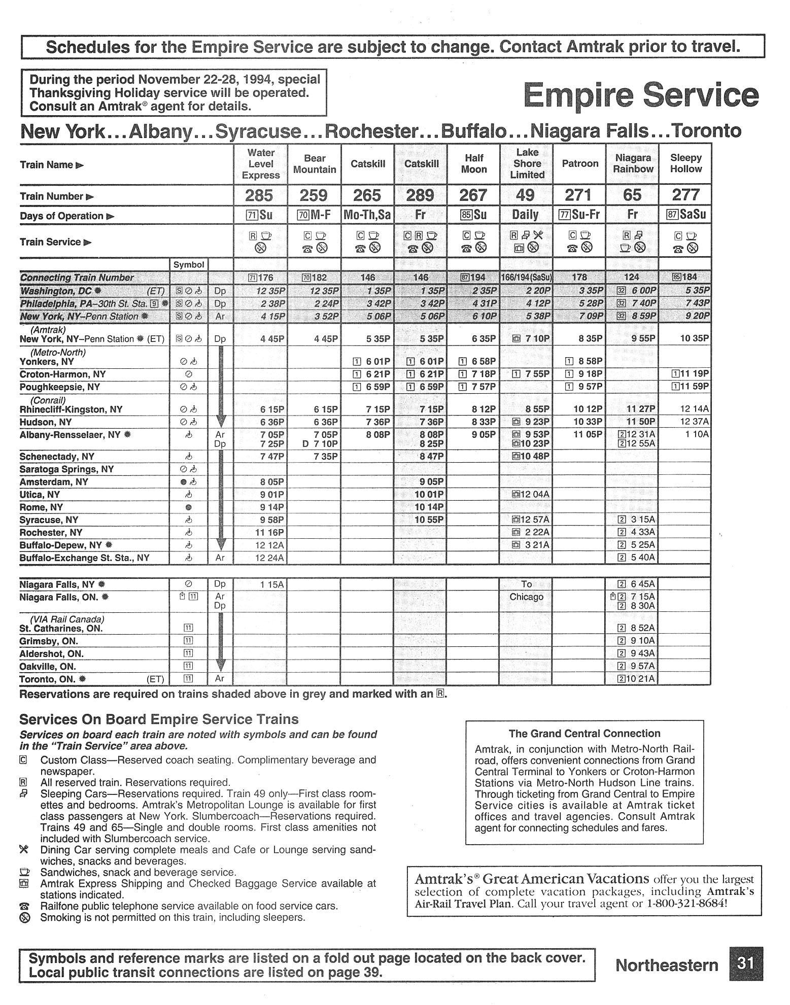 This timetable image is ©1994 National Railroad Passenger Corporation (Amtrak).