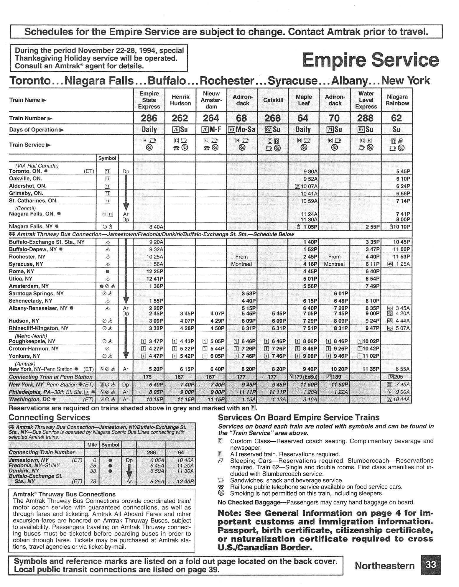 This timetable image is ©1994 National Railroad Passenger Corporation (Amtrak).