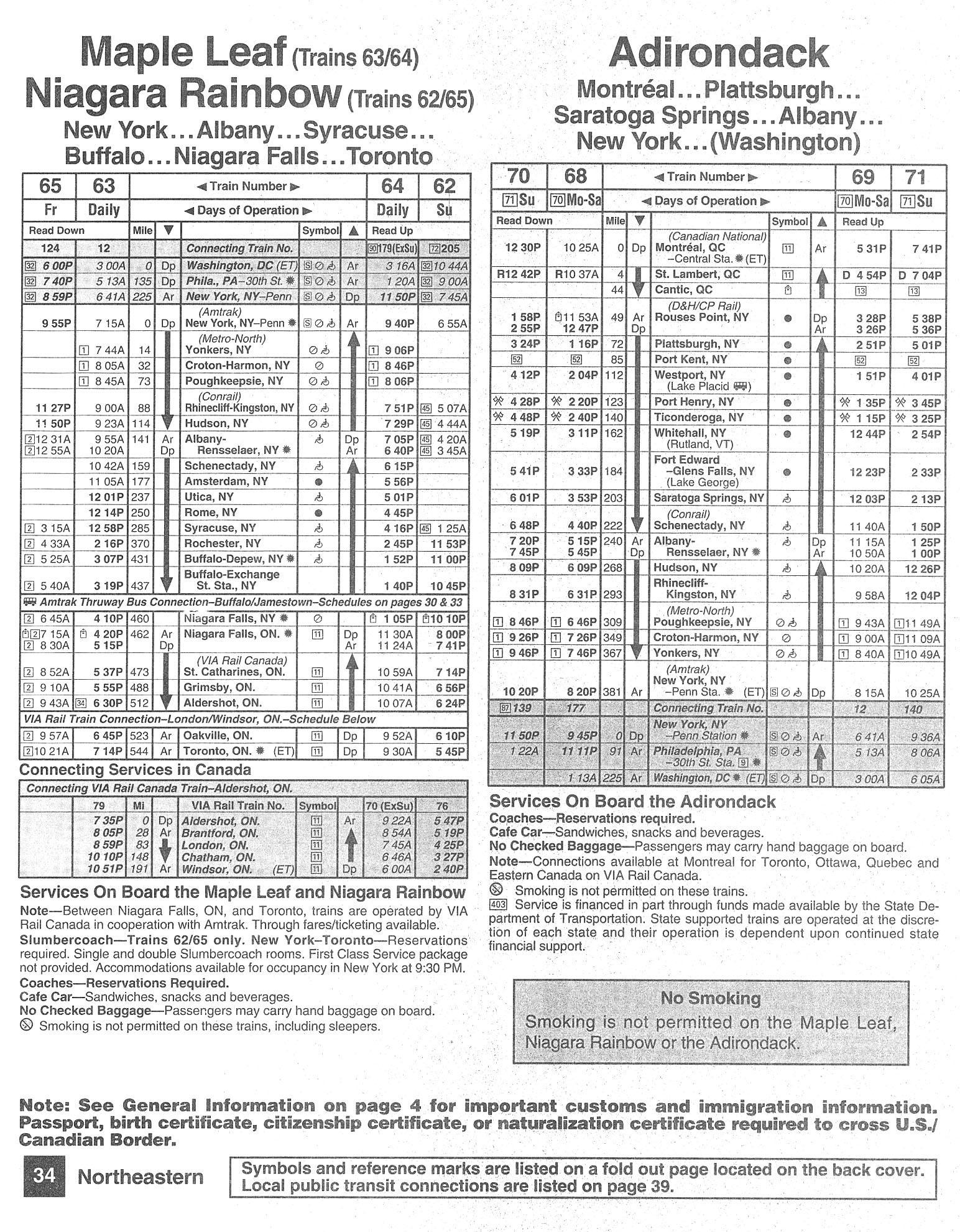 This timetable image is ©1994 National Railroad Passenger Corporation (Amtrak).