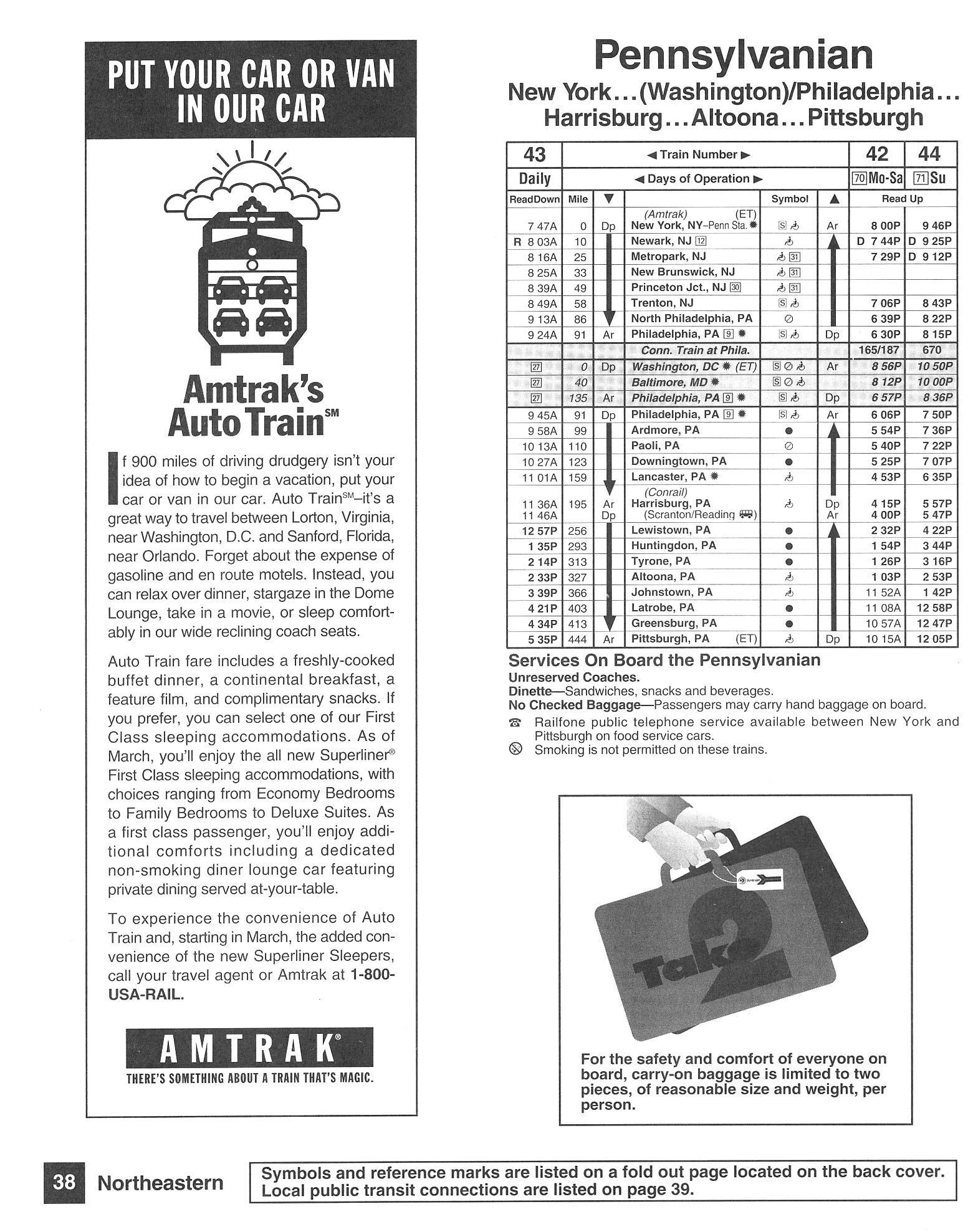 This timetable image is ©1994 National Railroad Passenger Corporation (Amtrak).