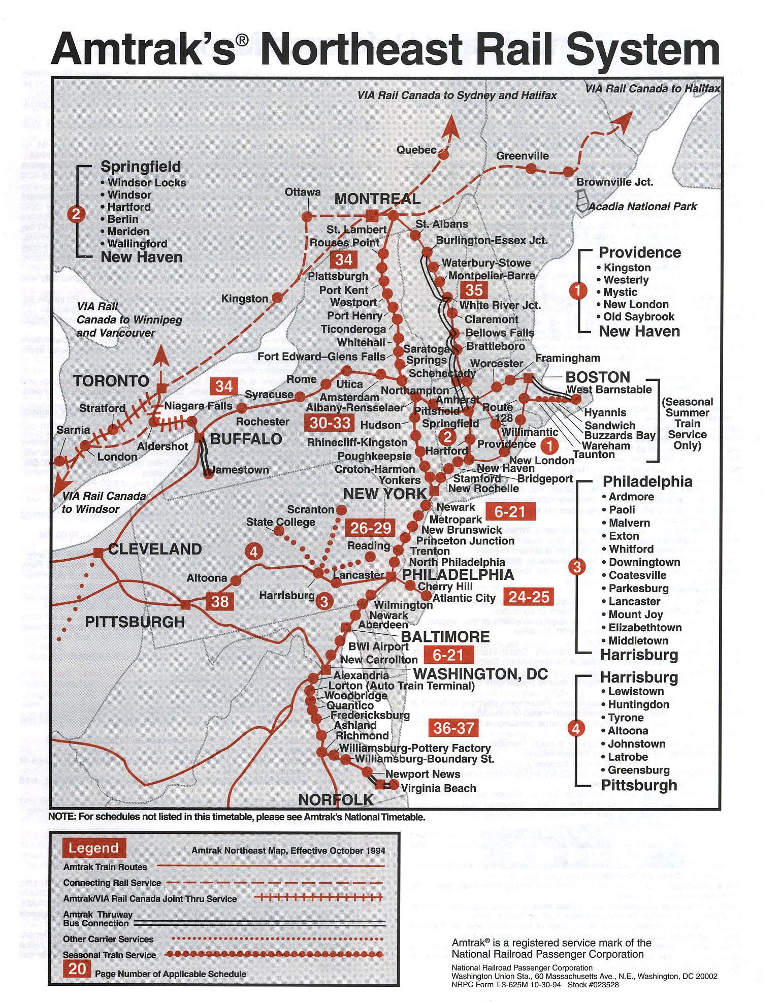 This timetable image is ©1994 National Railroad Passenger Corporation (Amtrak).