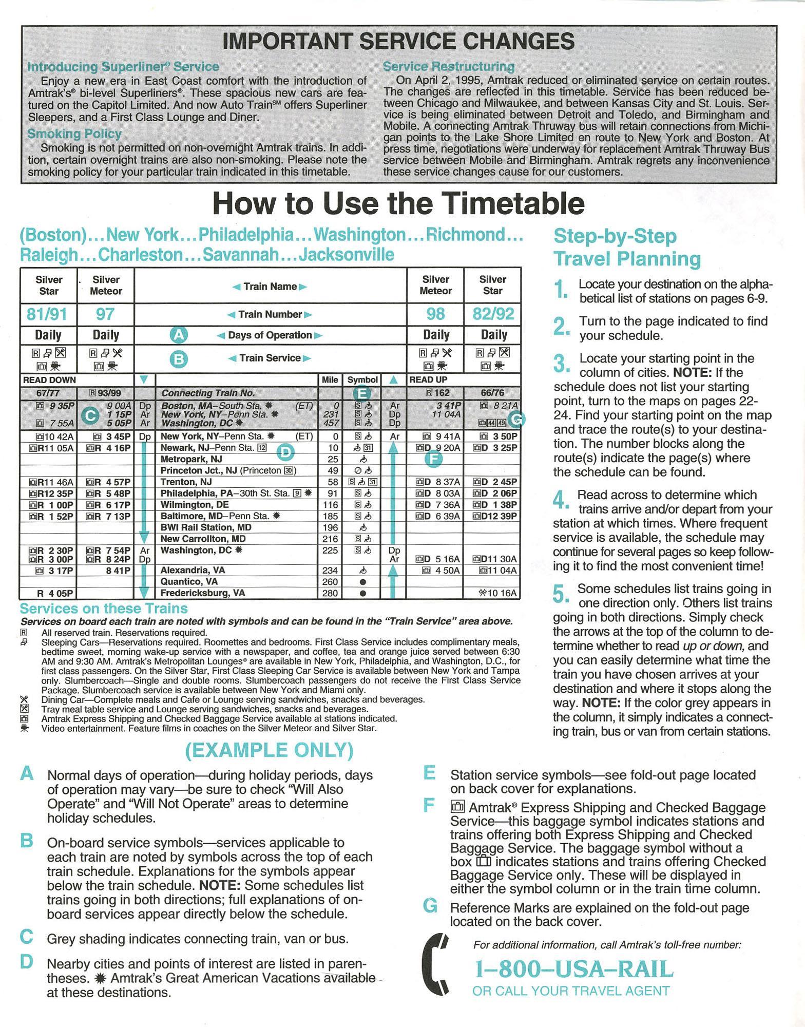 This timetable image is ©1995 National Railroad Passenger Corporation (Amtrak).