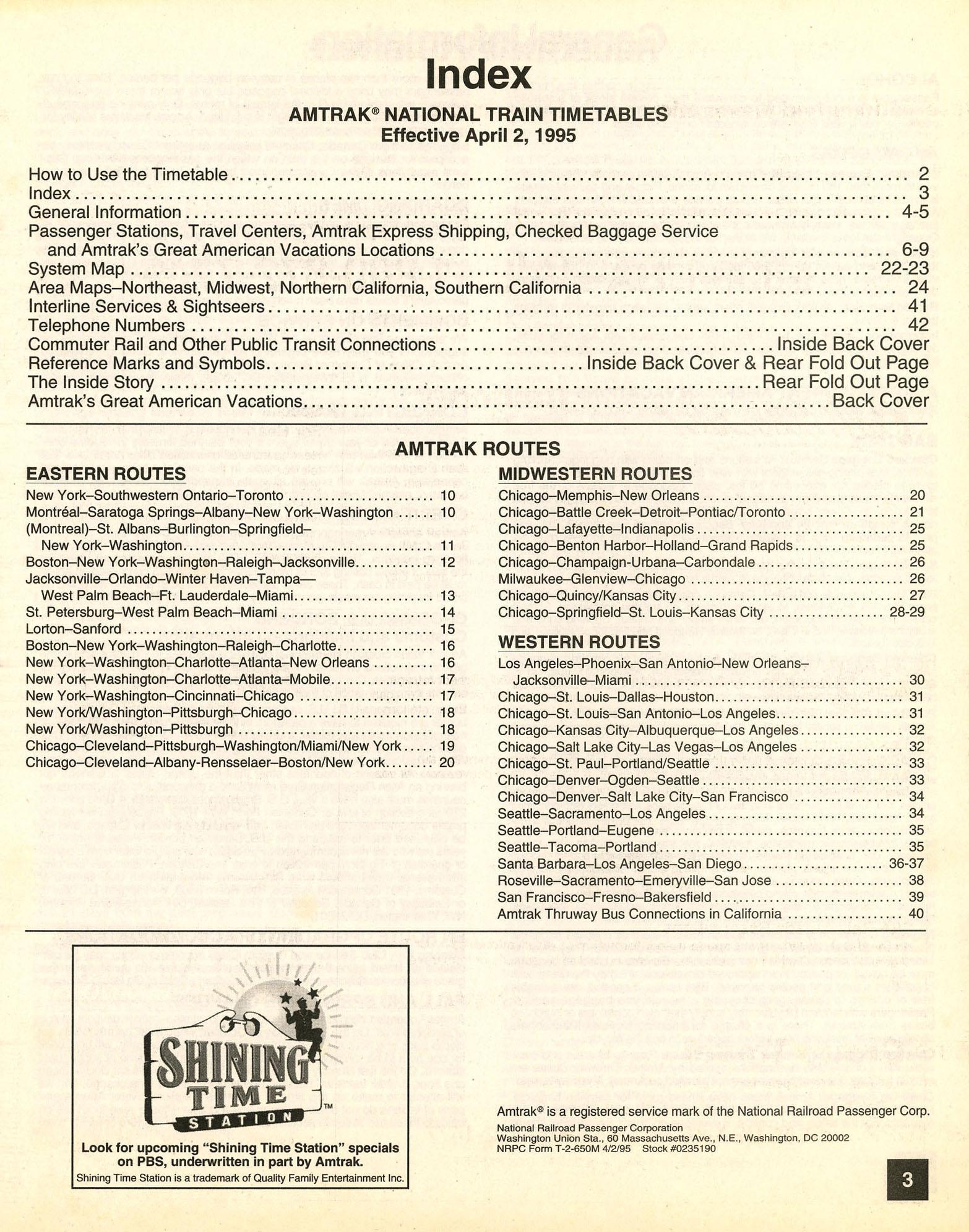 This timetable image is ©1995 National Railroad Passenger Corporation (Amtrak).