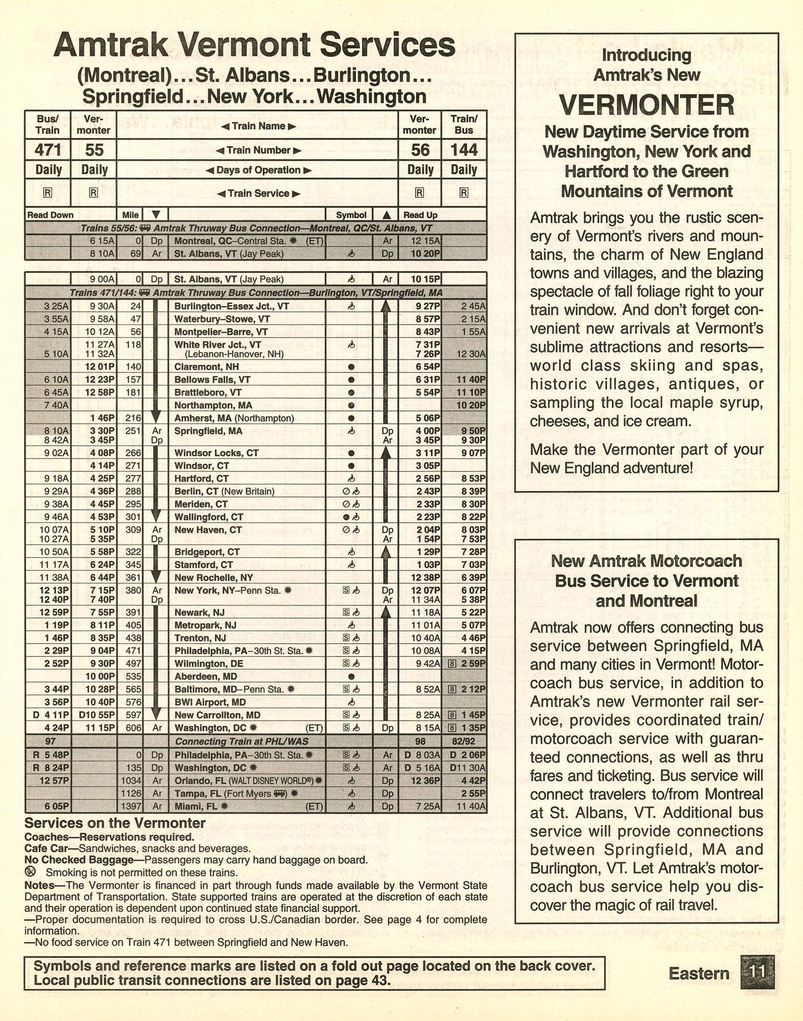 This timetable image is ©1995 National Railroad Passenger Corporation (Amtrak).