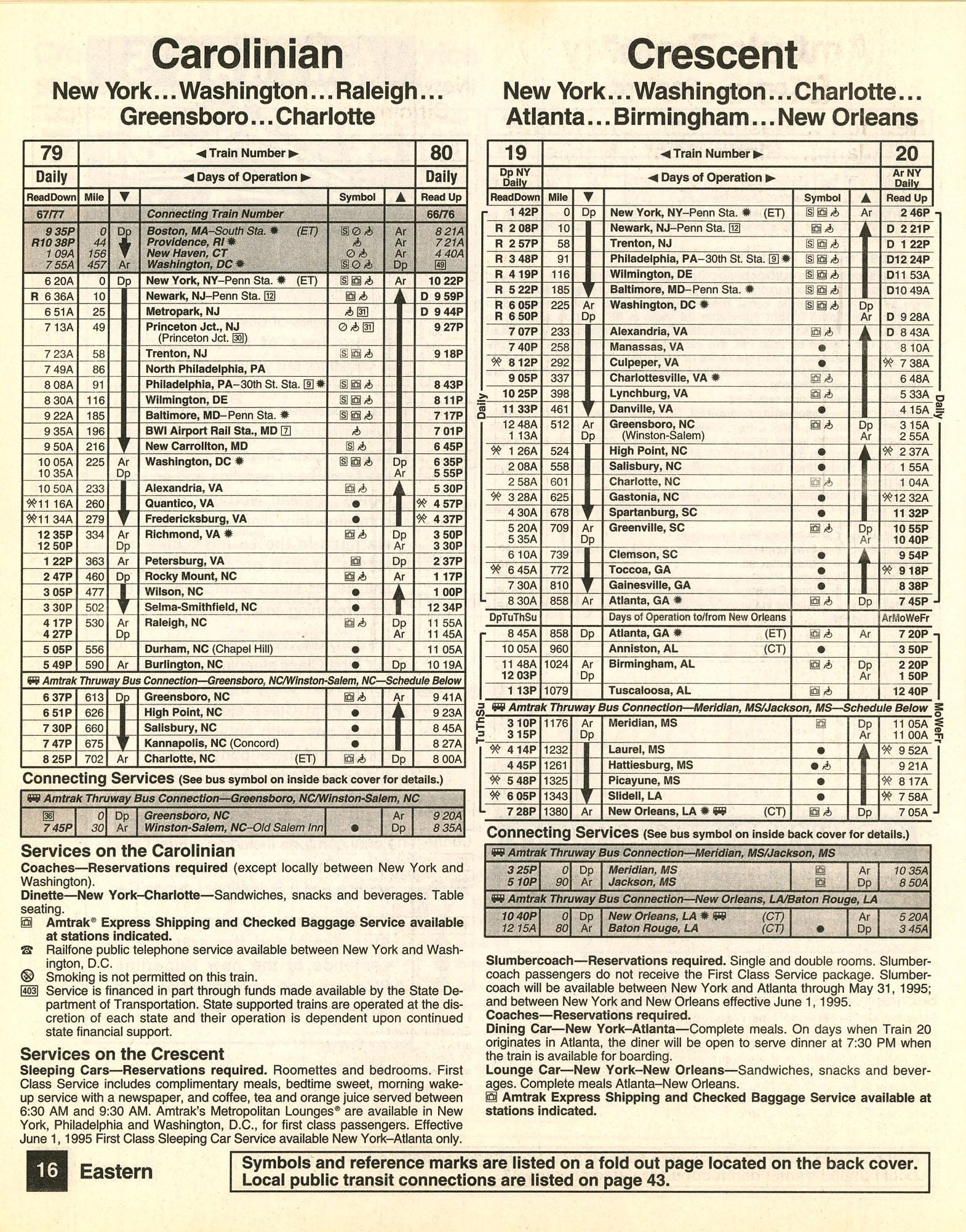 This timetable image is ©1995 National Railroad Passenger Corporation (Amtrak).