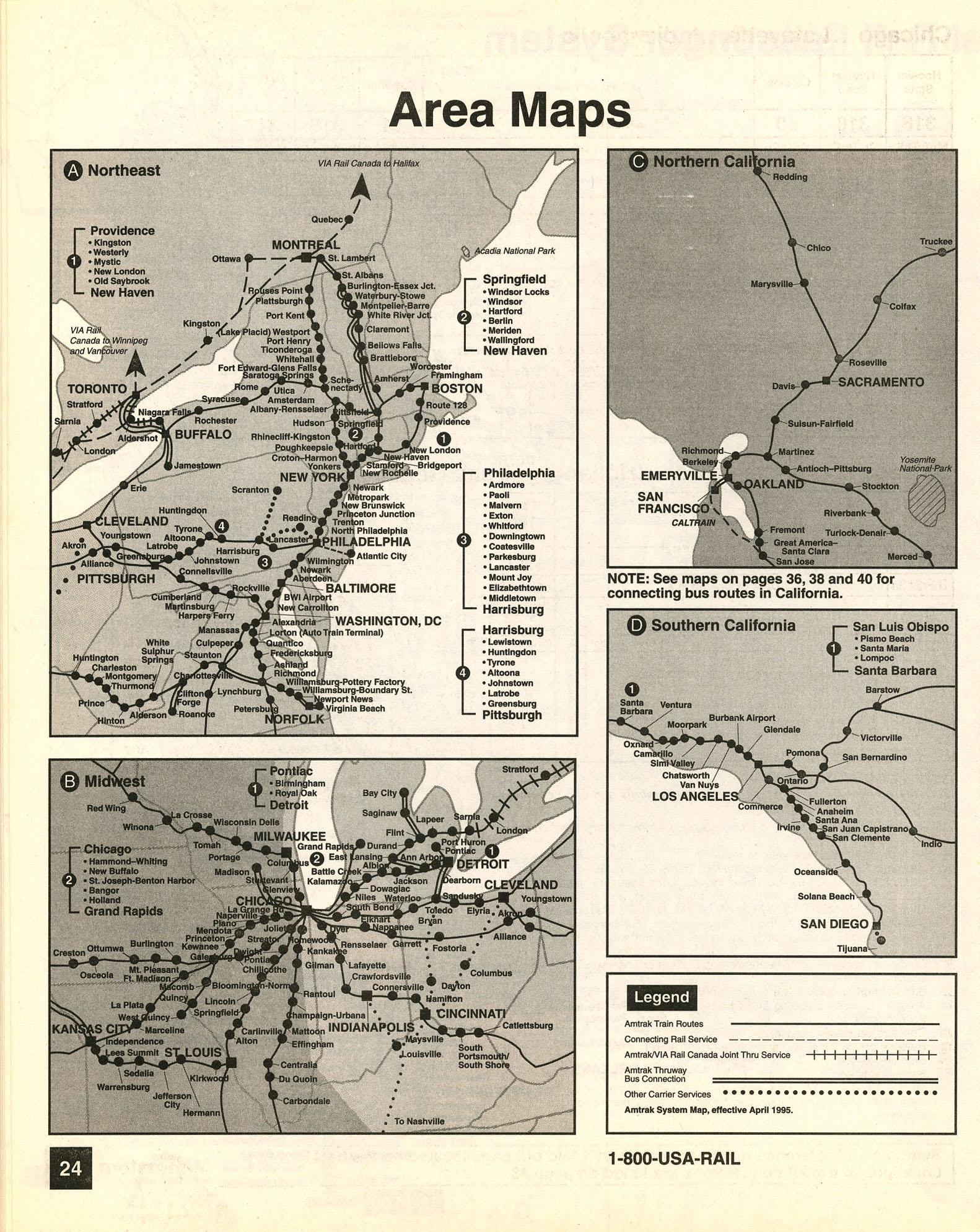 This timetable image is ©1995 National Railroad Passenger Corporation (Amtrak).
