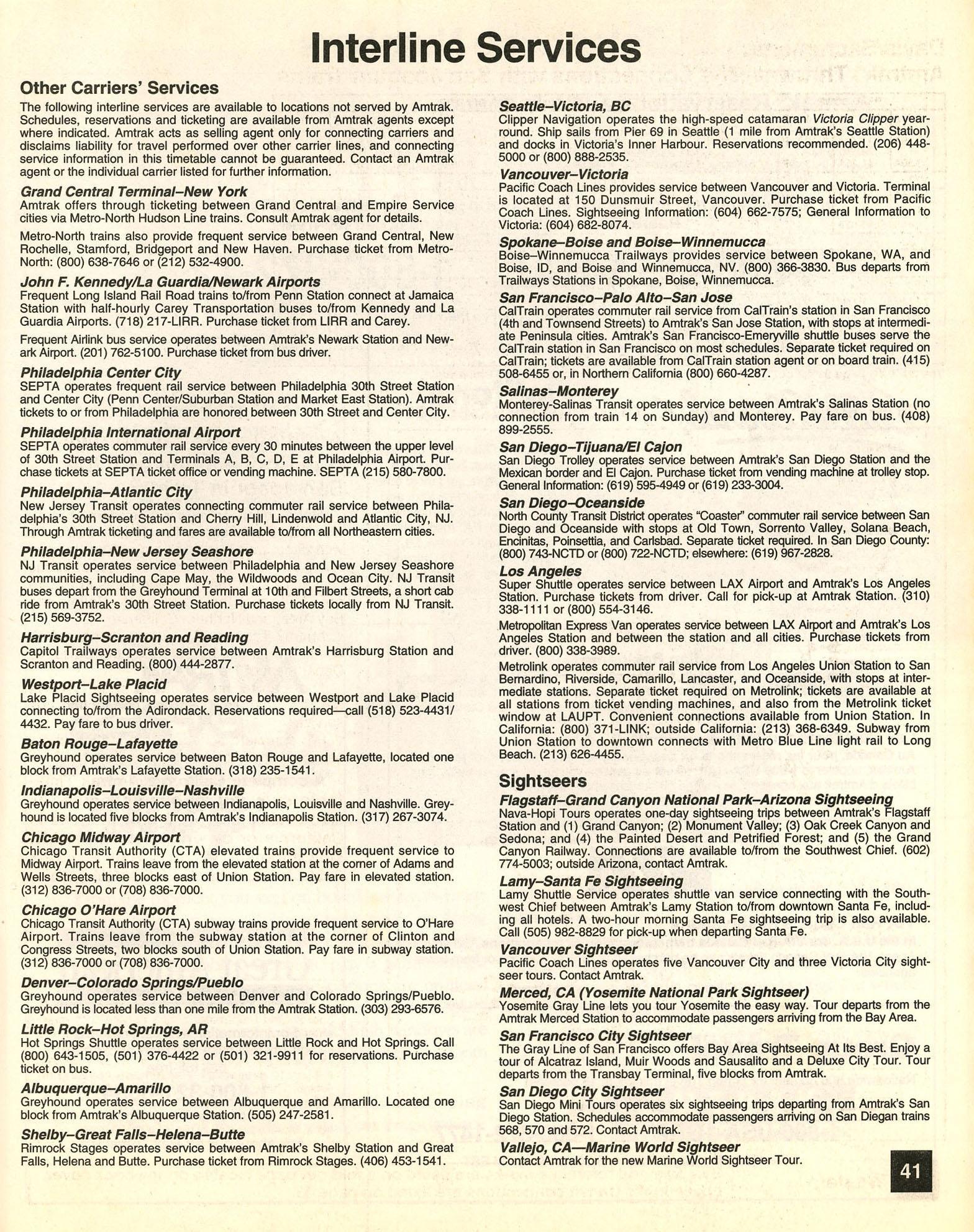 This timetable image is ©1995 National Railroad Passenger Corporation (Amtrak).