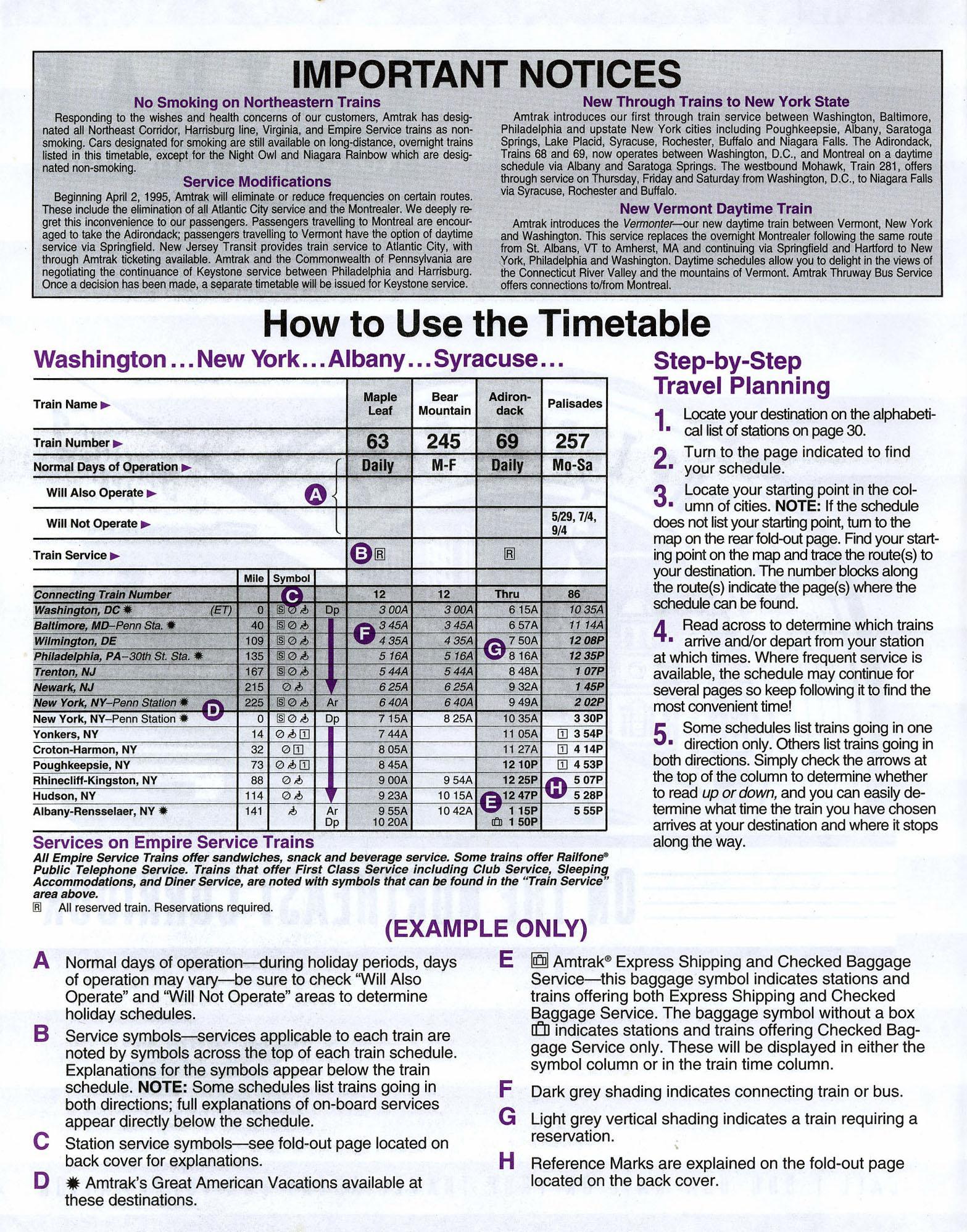 This timetable image is ©1995 National Railroad Passenger Corporation (Amtrak).