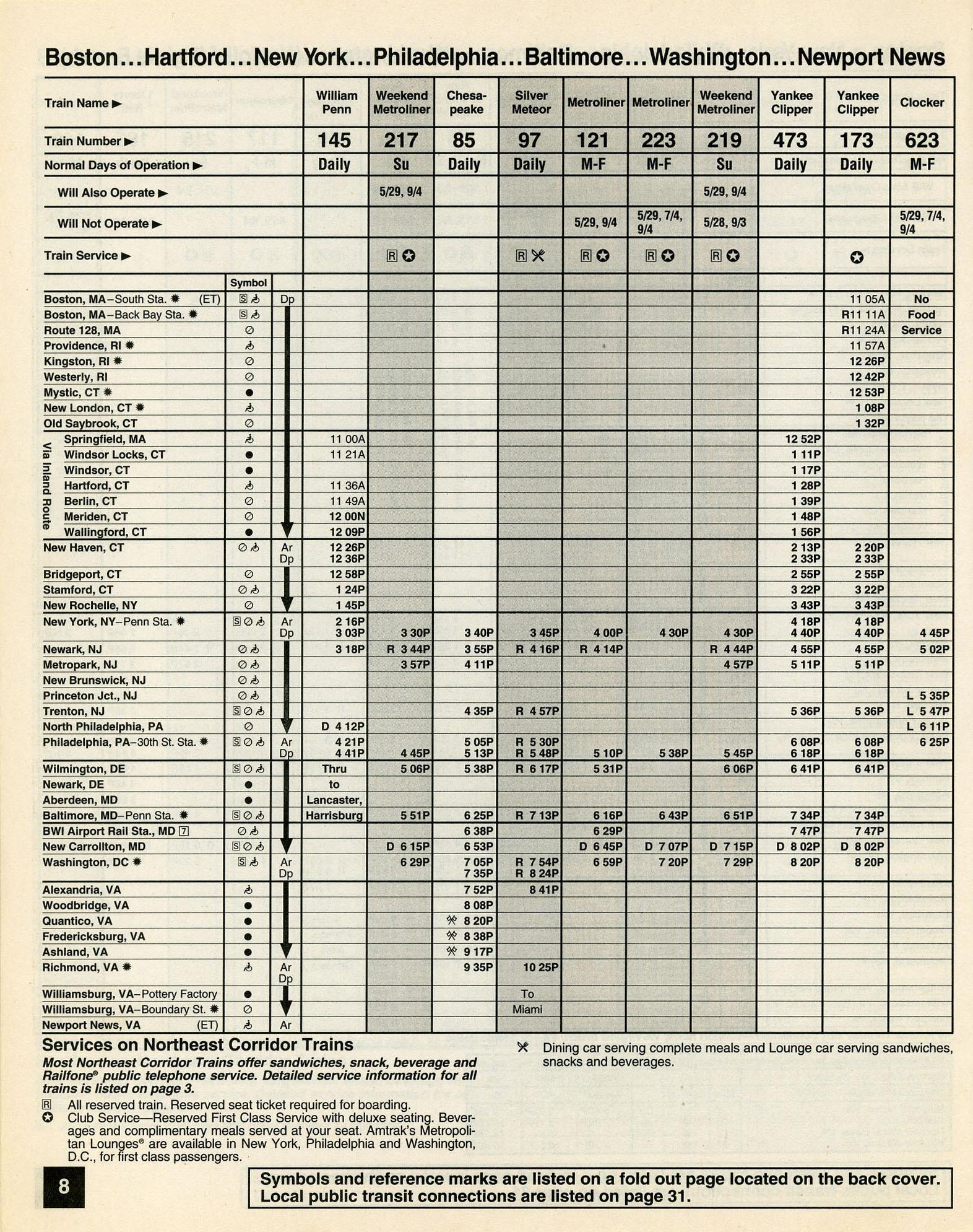 This timetable image is ©1995 National Railroad Passenger Corporation (Amtrak).