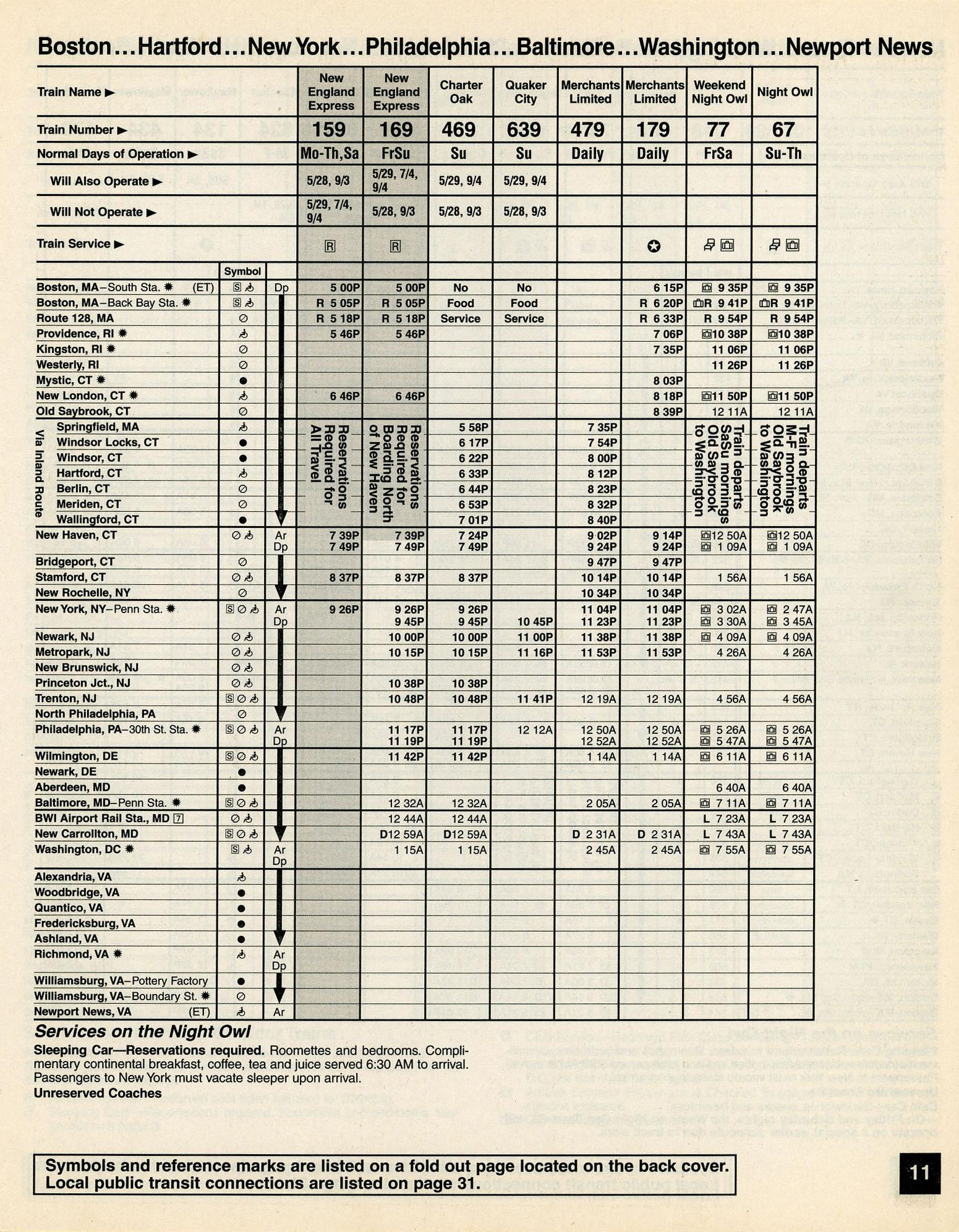This timetable image is ©1995 National Railroad Passenger Corporation (Amtrak).