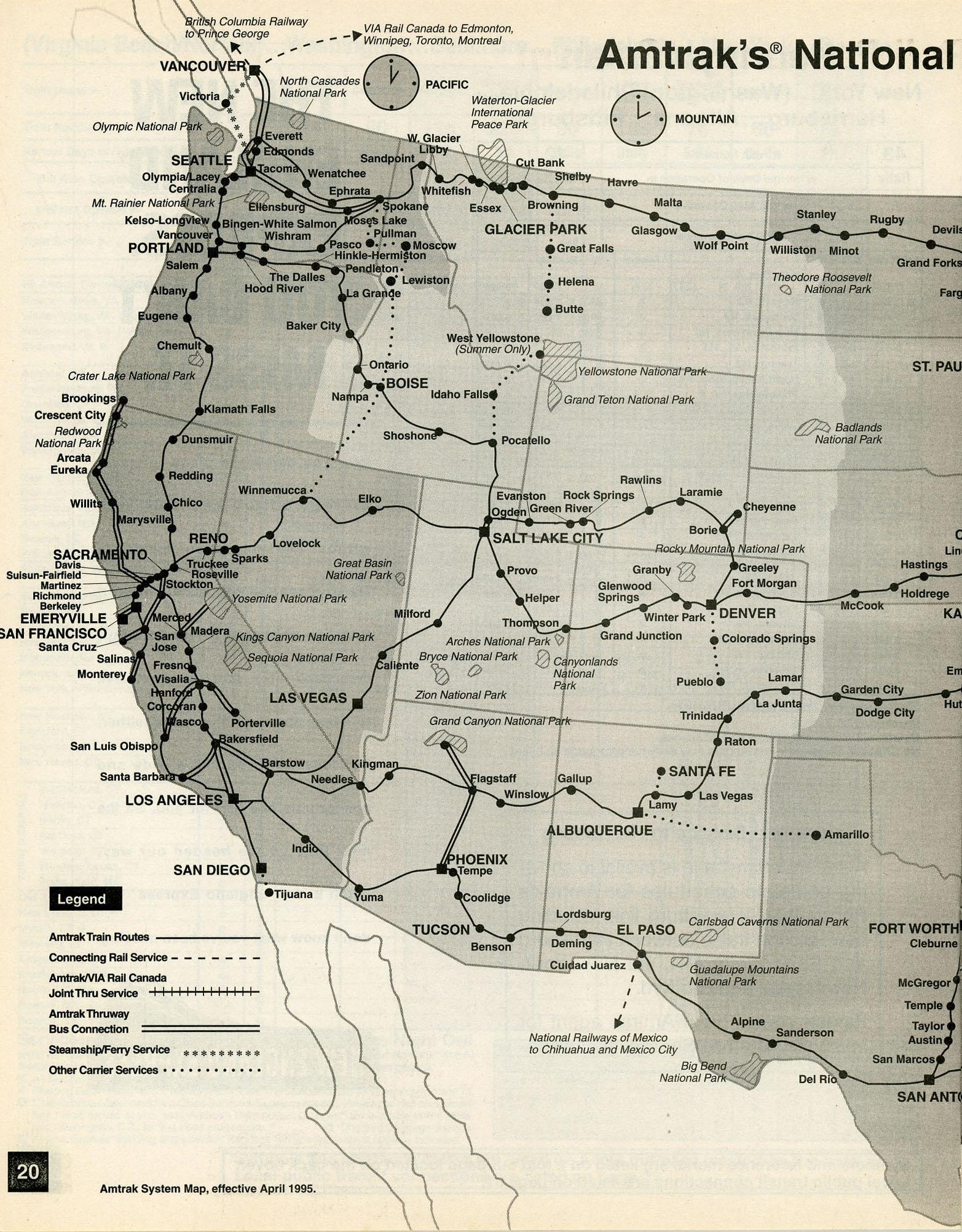 This timetable image is ©1995 National Railroad Passenger Corporation (Amtrak).