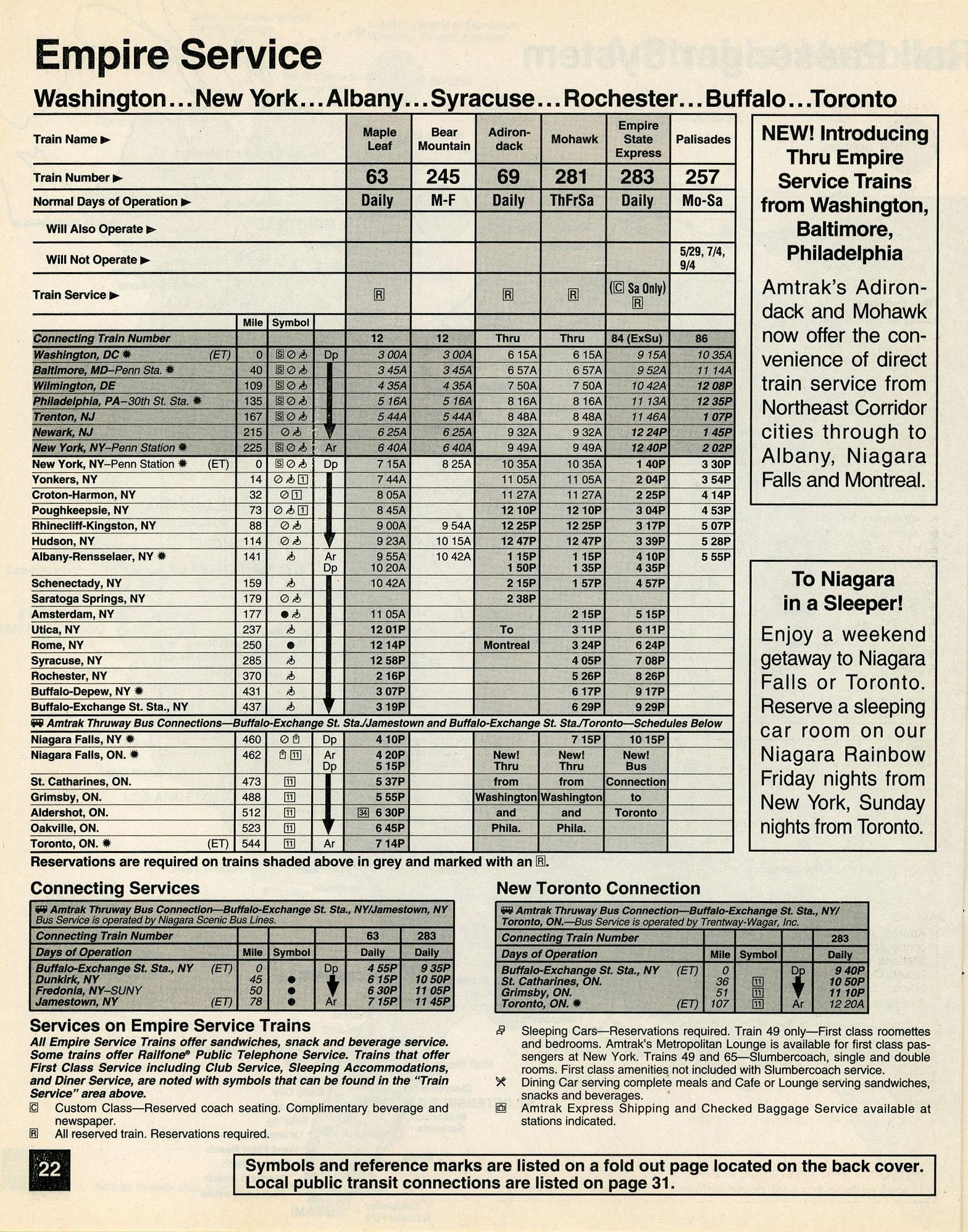 This timetable image is ©1995 National Railroad Passenger Corporation (Amtrak).