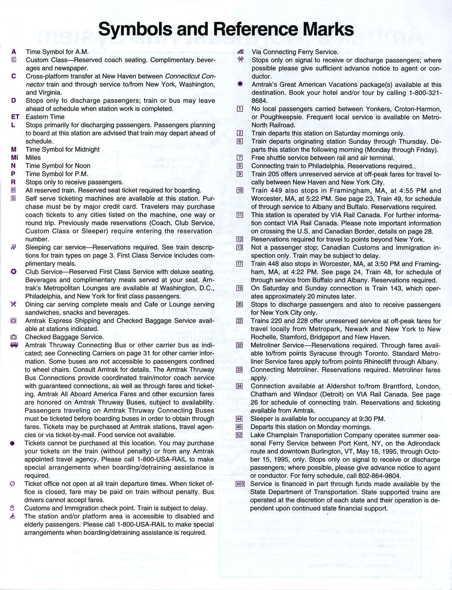 This timetable image is ©1995 National Railroad Passenger Corporation (Amtrak).