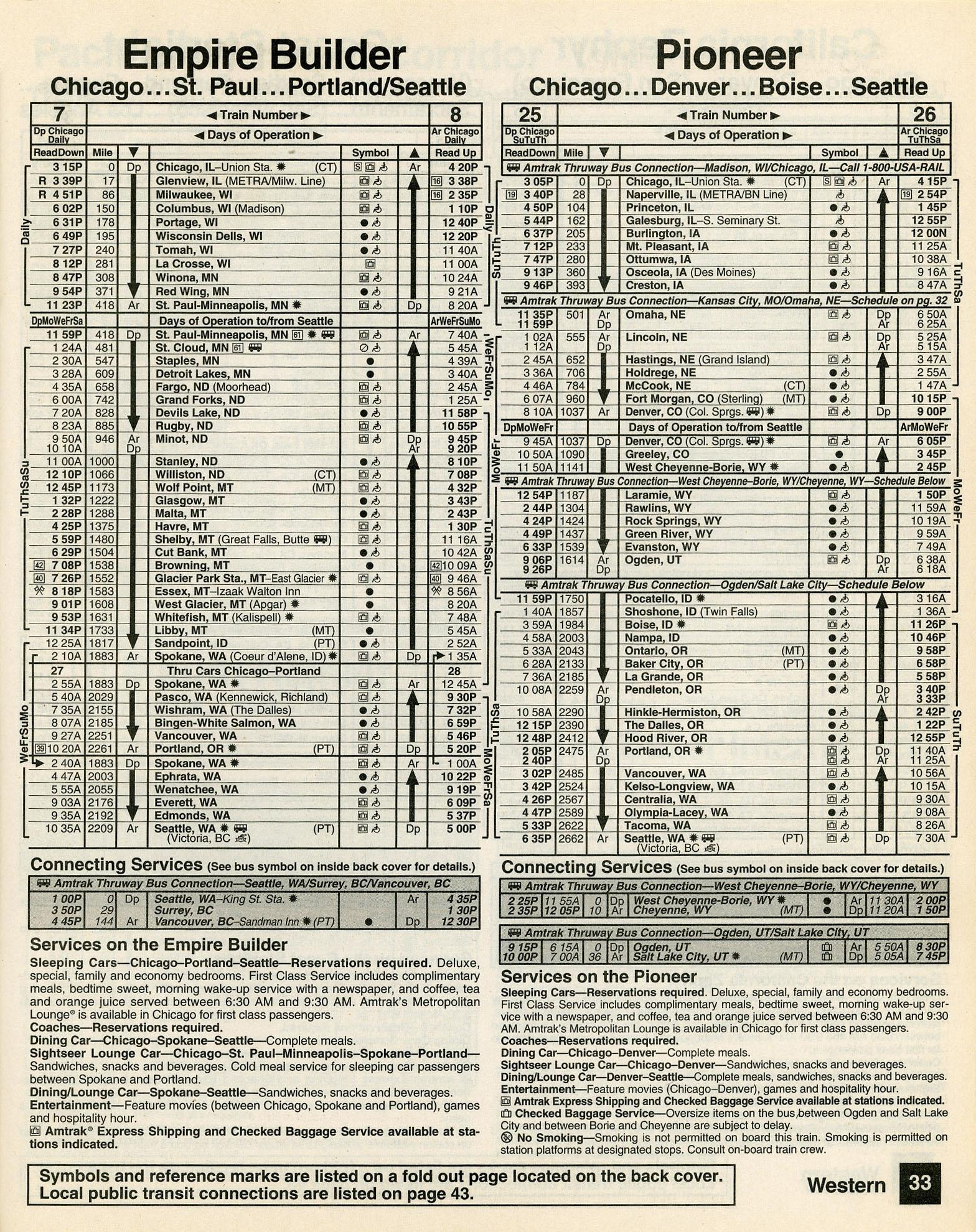 This timetable image is ©1995 National Railroad Passenger Corporation (Amtrak).