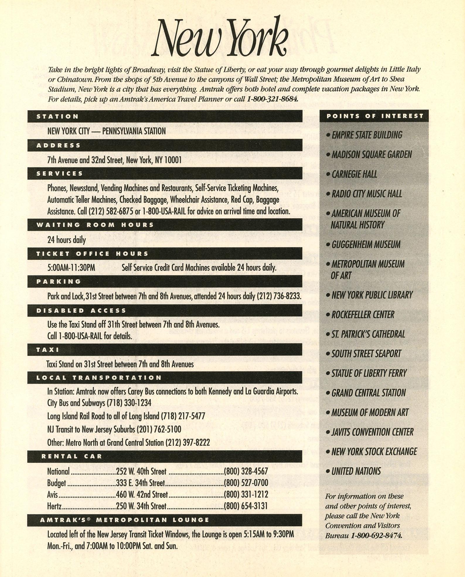 This timetable image is ©1995 National Railroad Passenger Corporation (Amtrak).