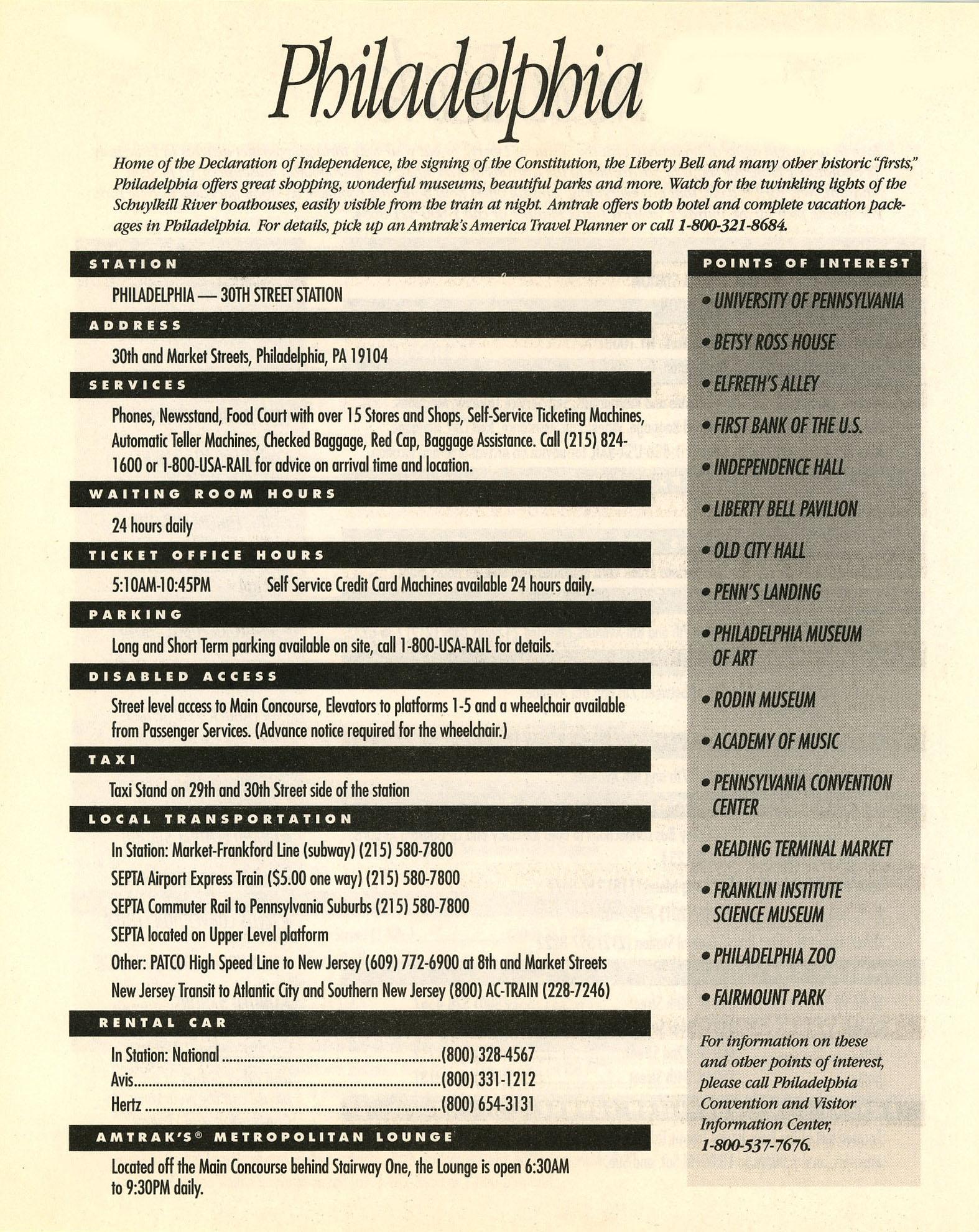 This timetable image is ©1995 National Railroad Passenger Corporation (Amtrak).