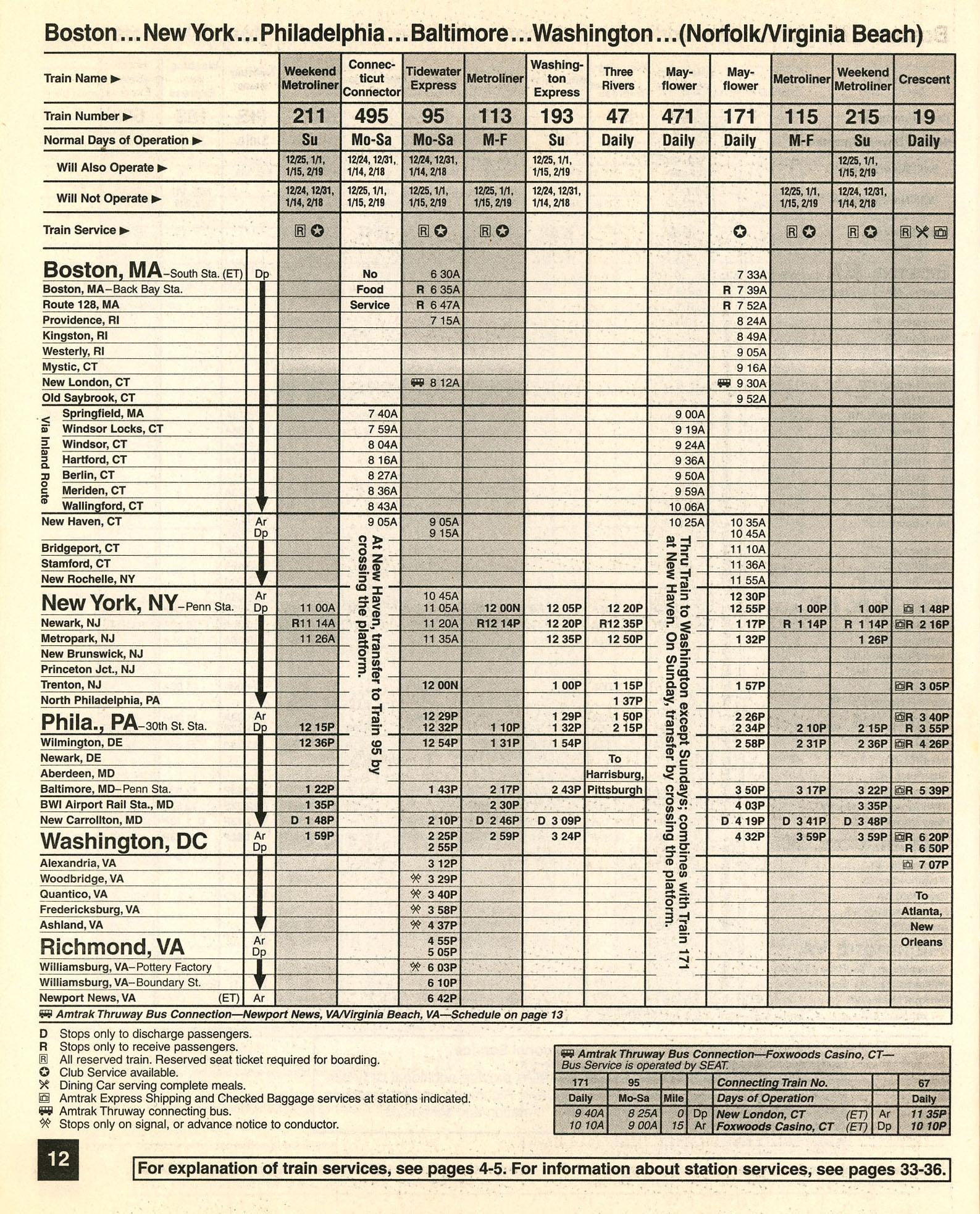 This timetable image is ©1995 National Railroad Passenger Corporation (Amtrak).